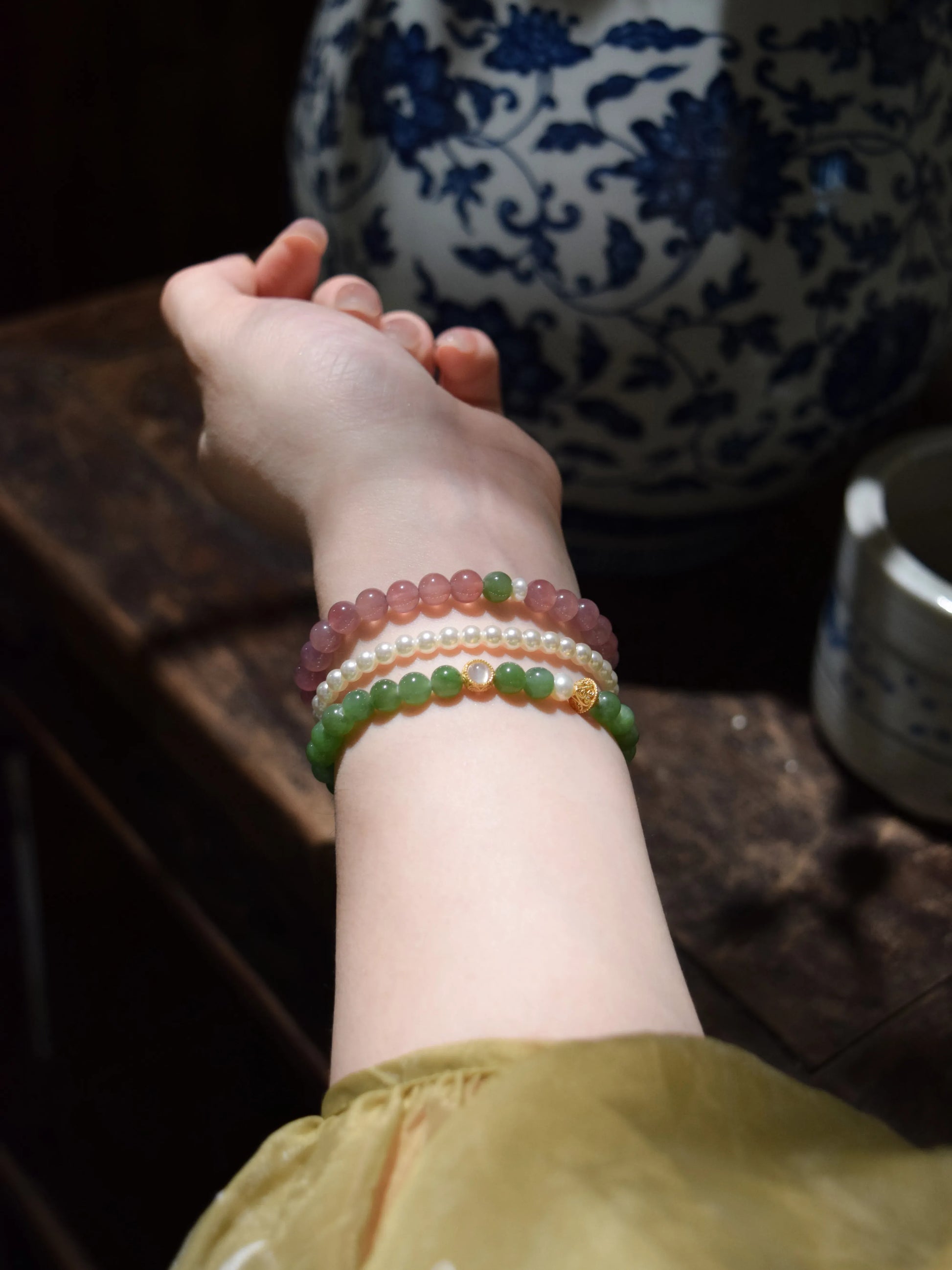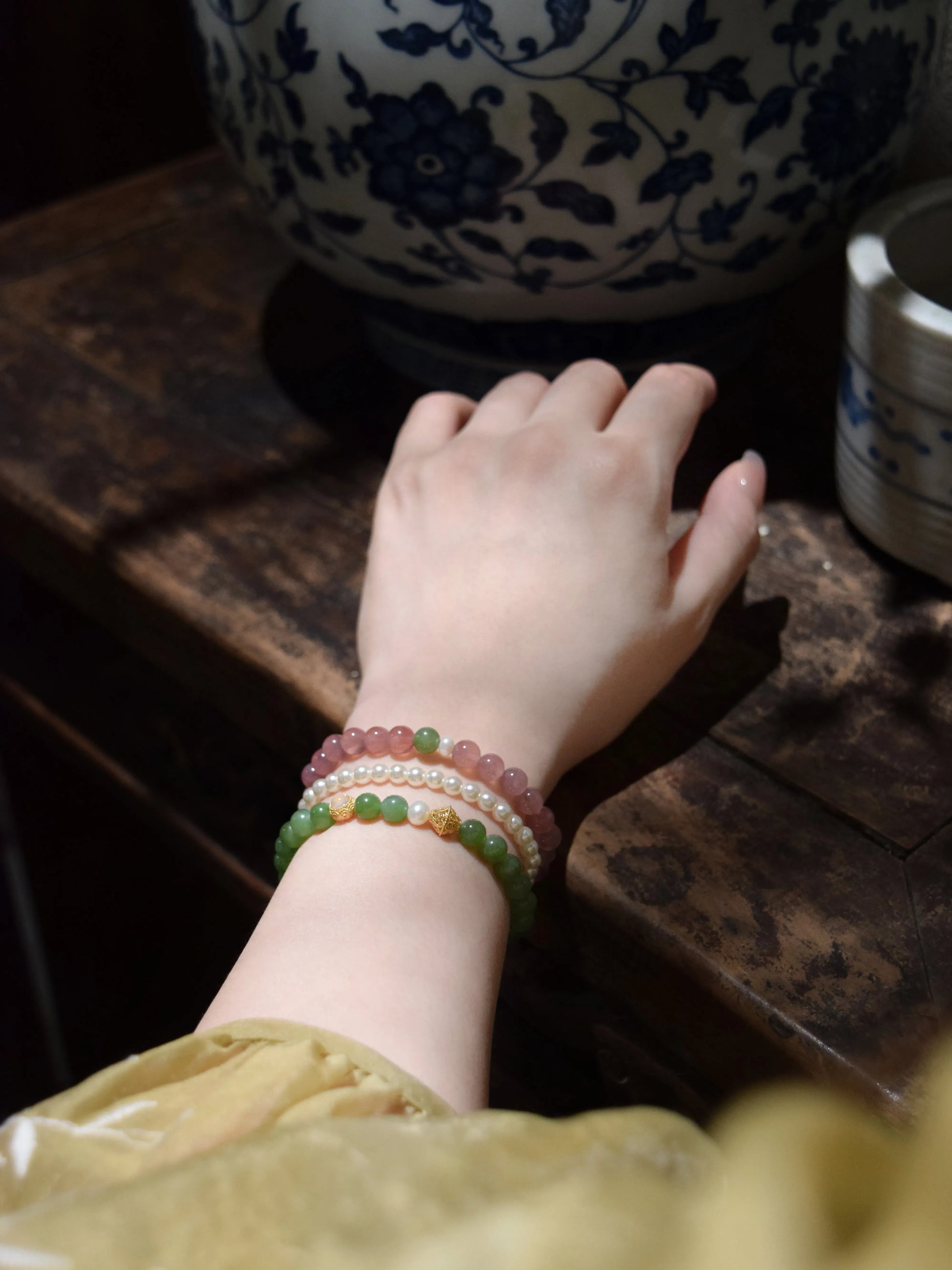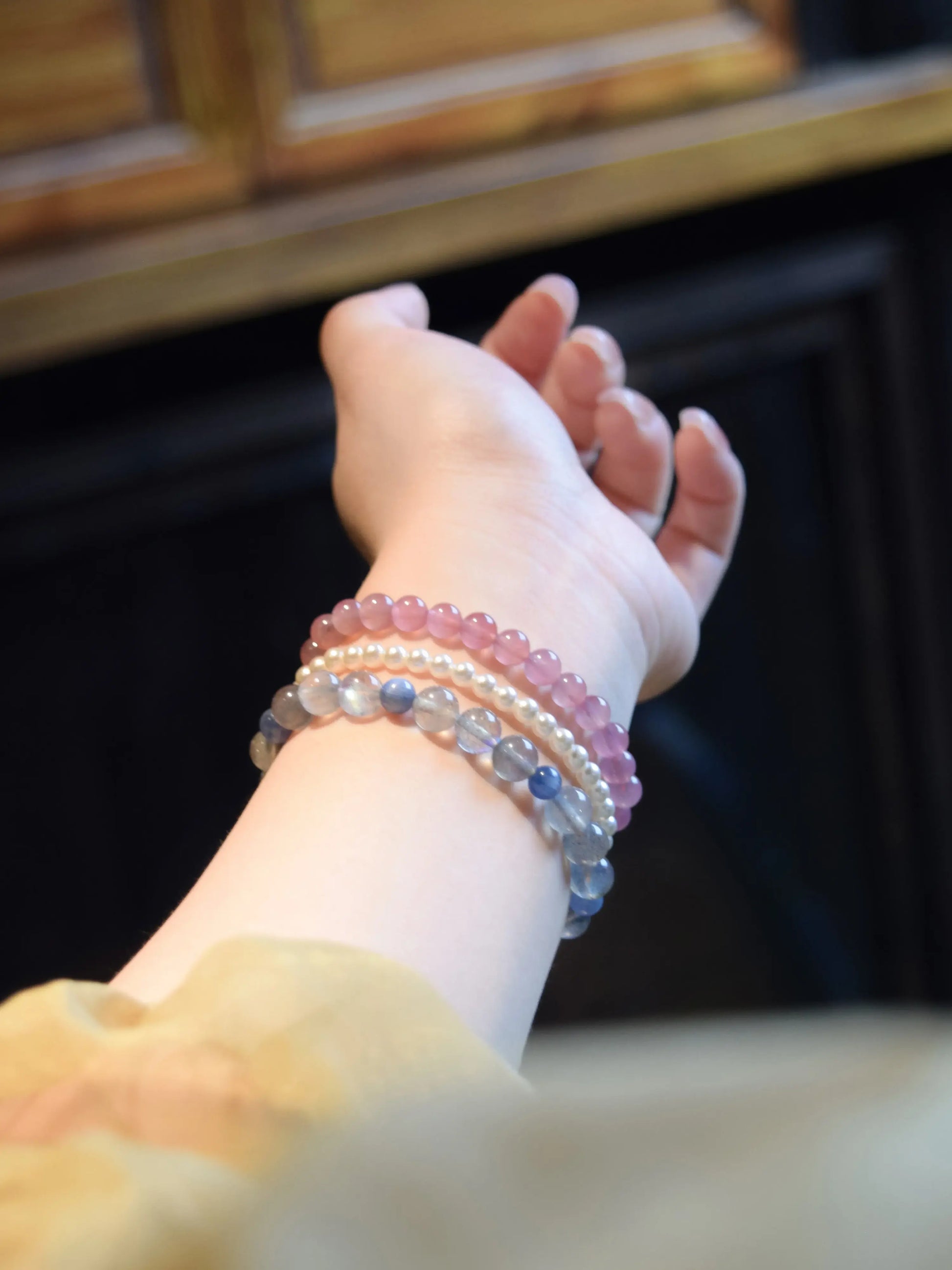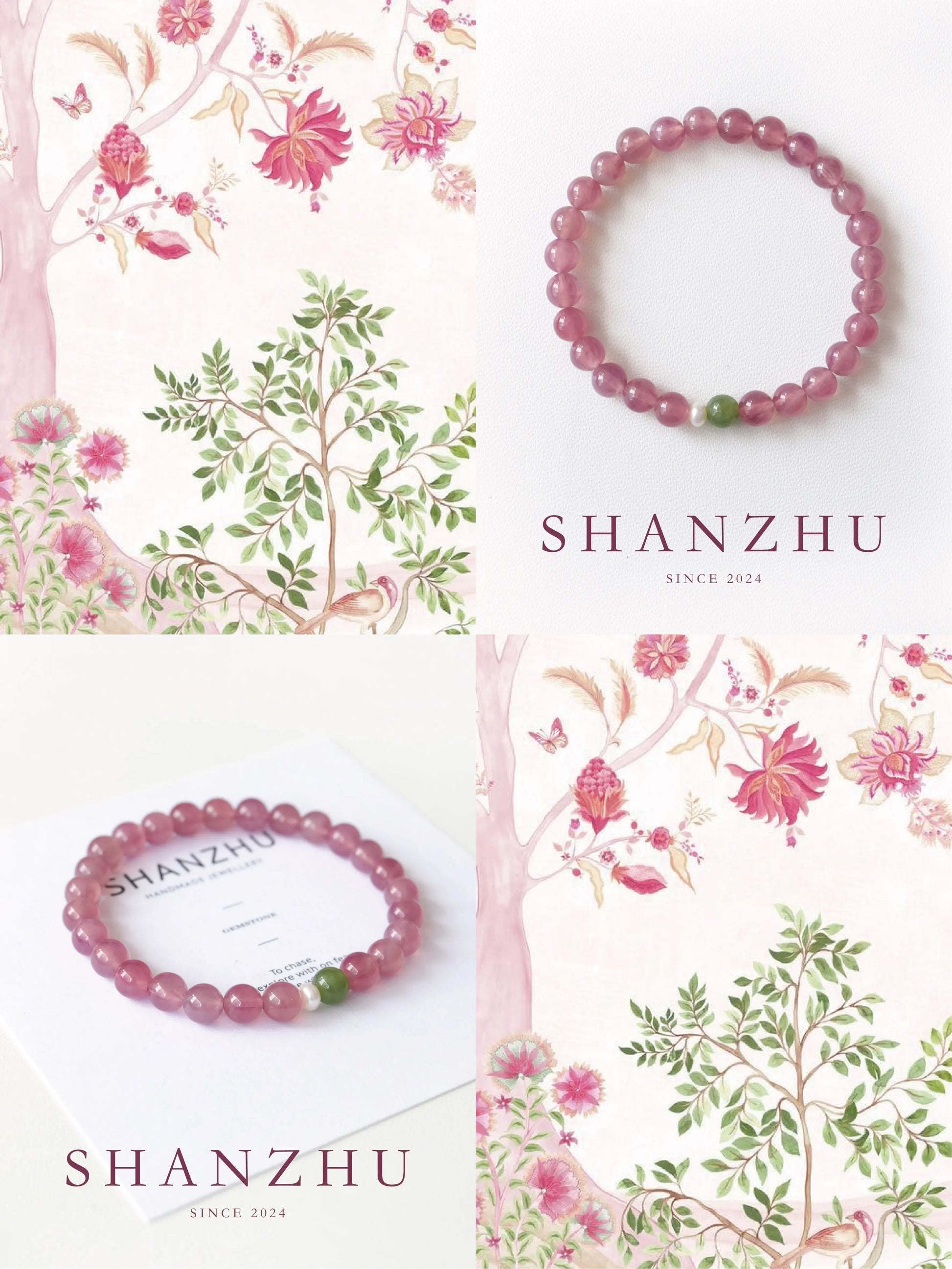 「山茶」ピンクカルサイト 清楚で明るい印象の天然石ブレスレット