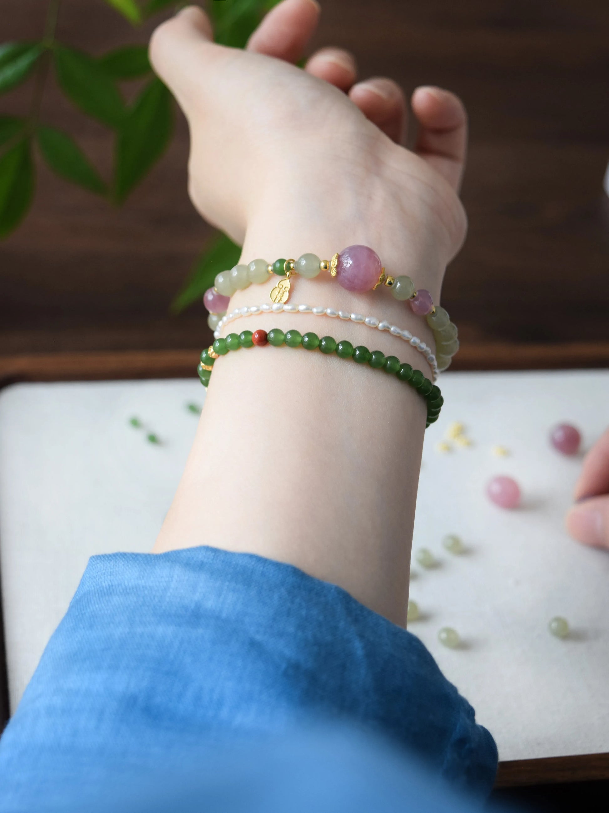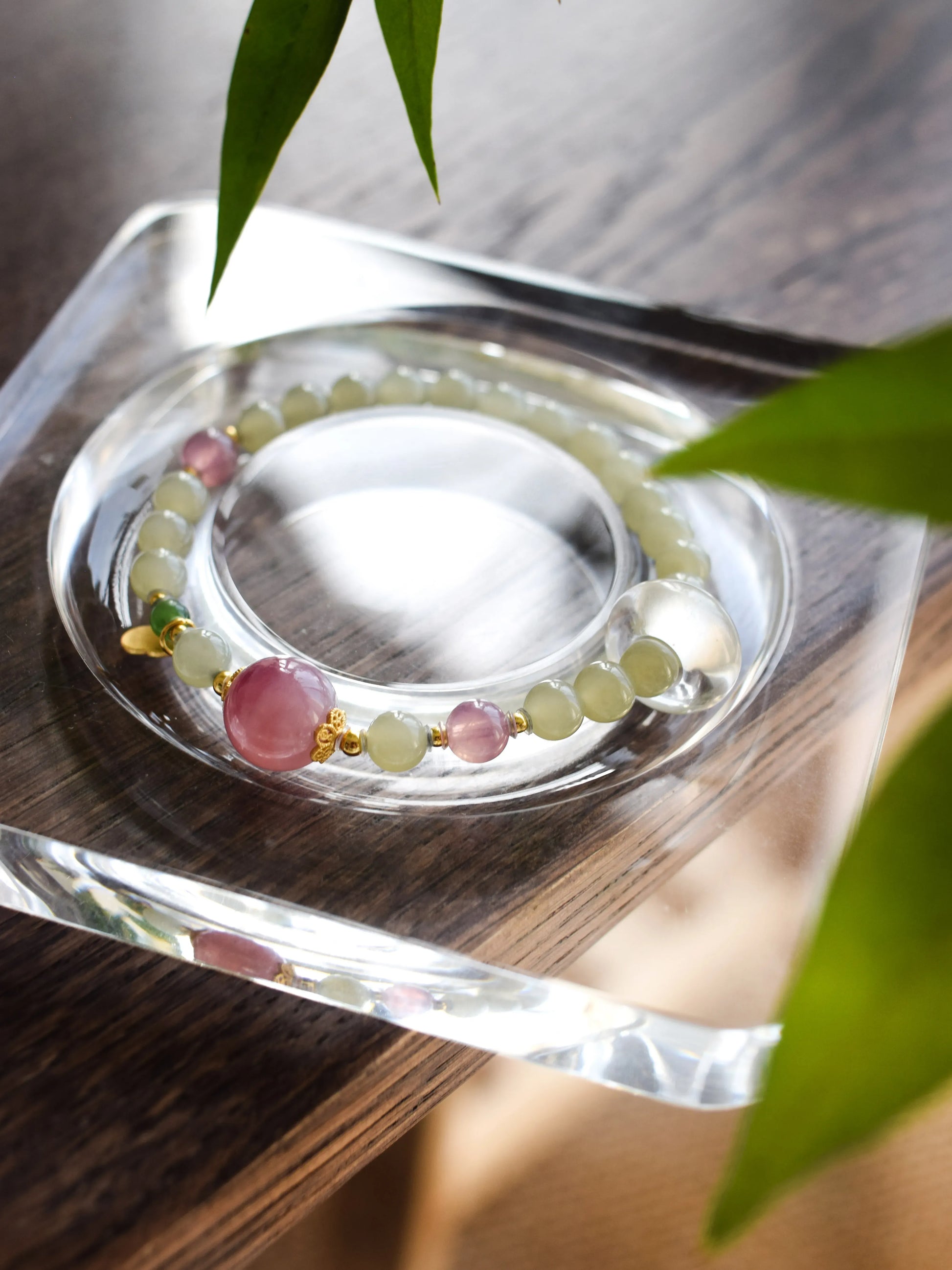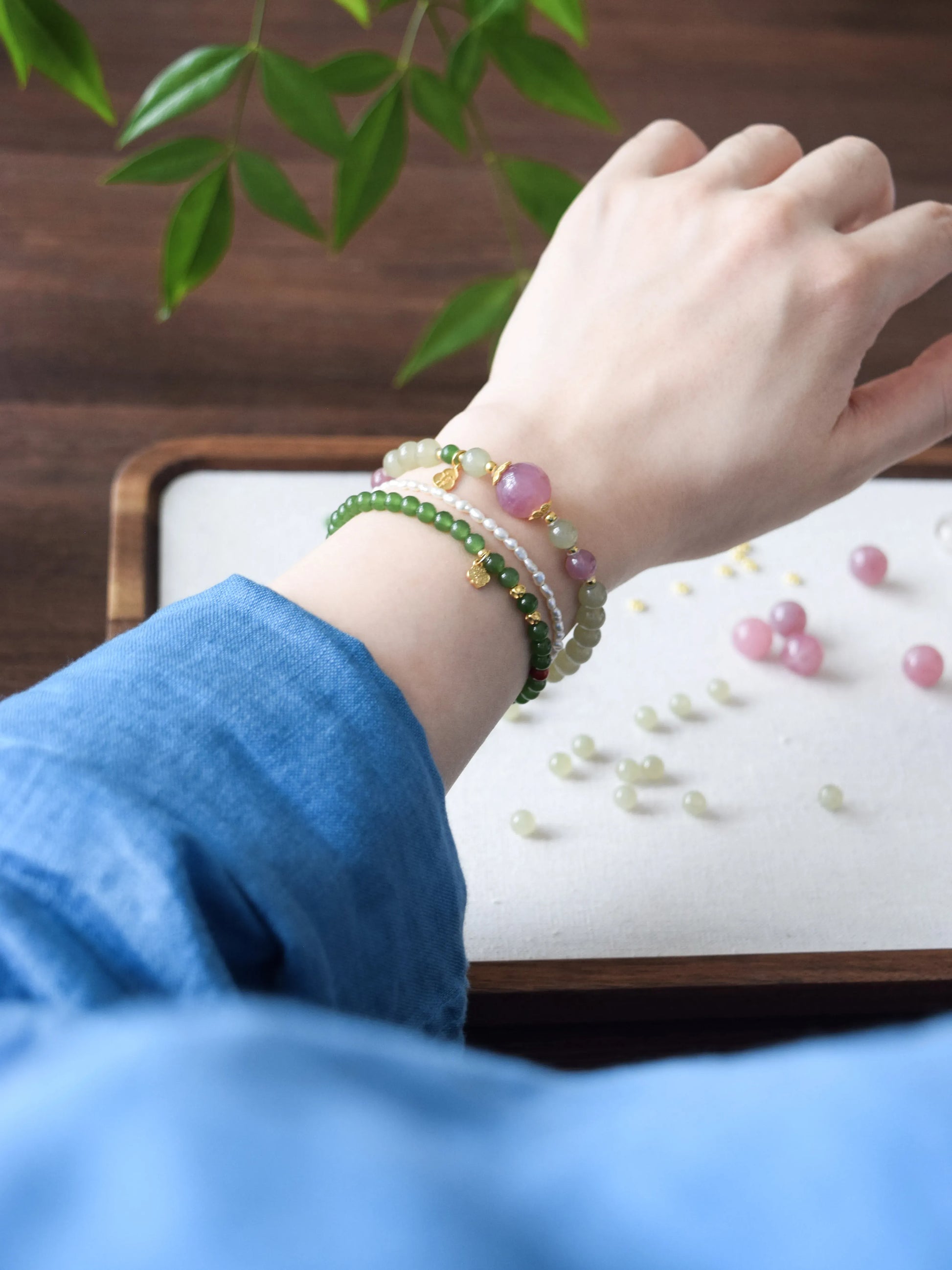 「無心緑」ライトホータン玉 晴水色 天然石ブレスレット 上品系