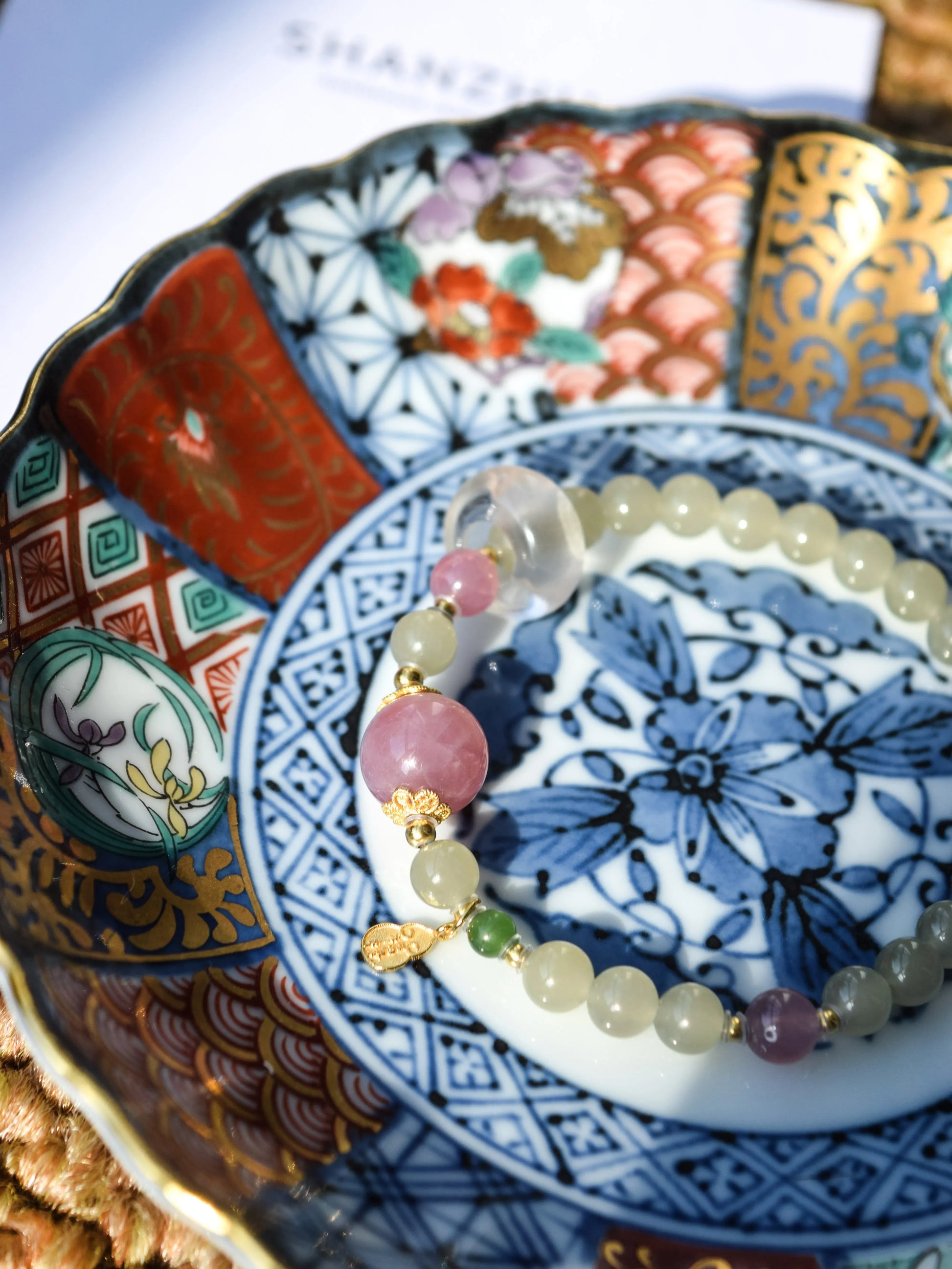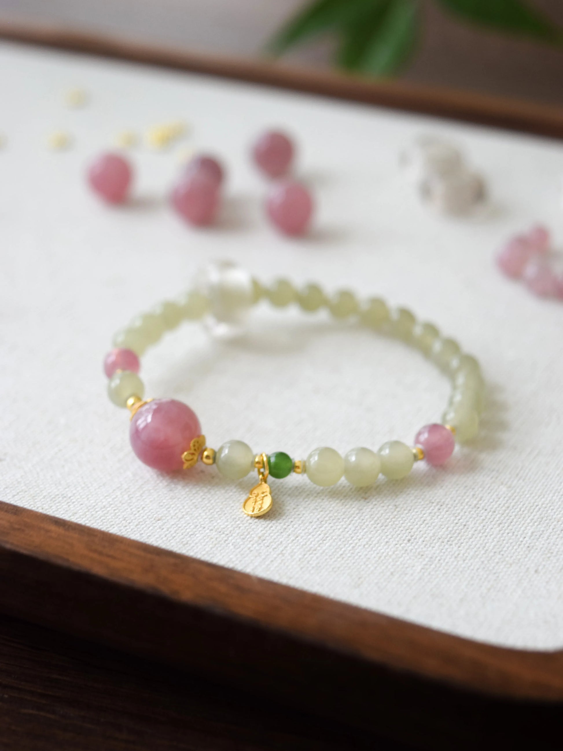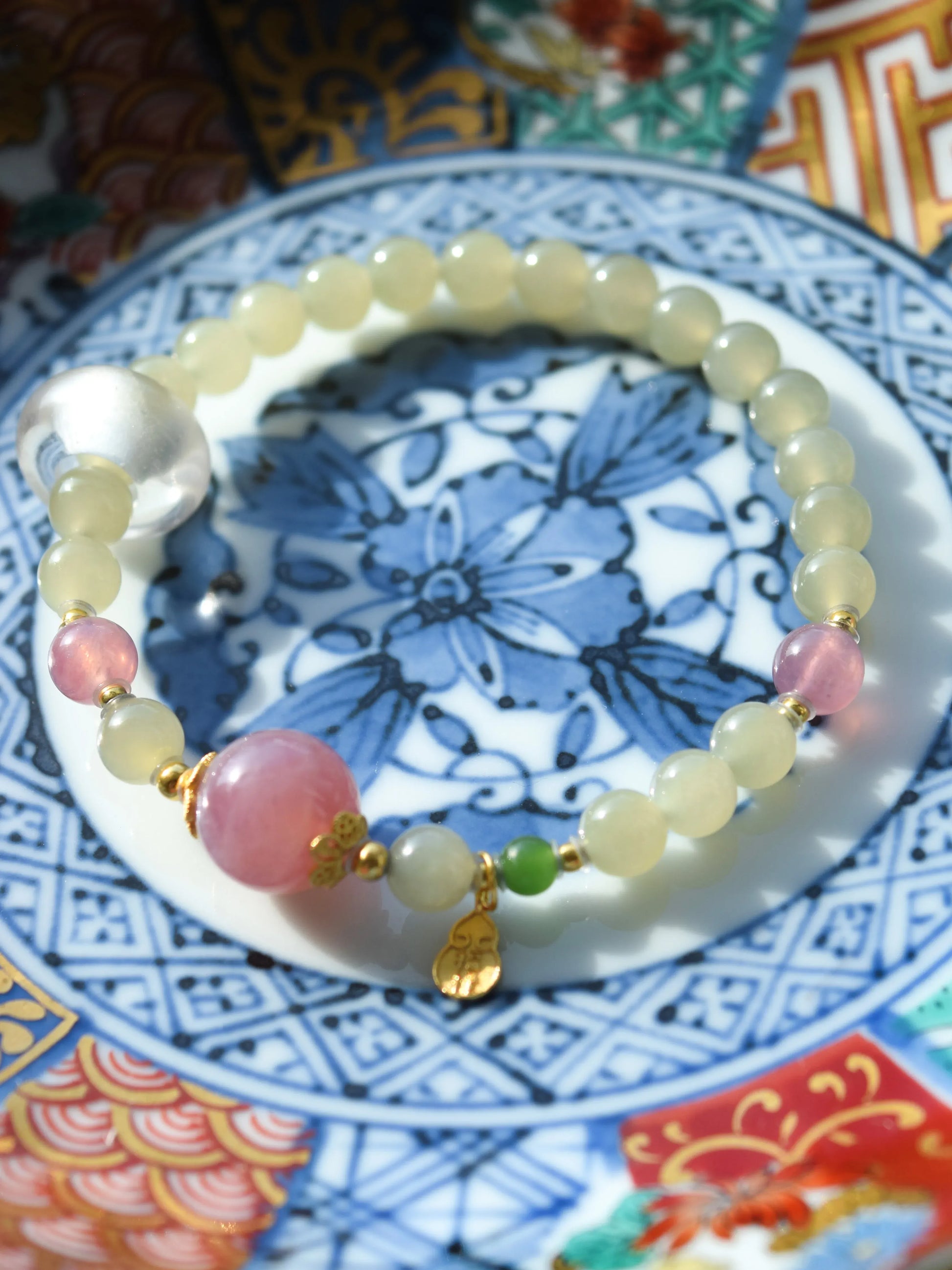 「無心緑」ライトホータン玉 晴水色 天然石ブレスレット 上品系