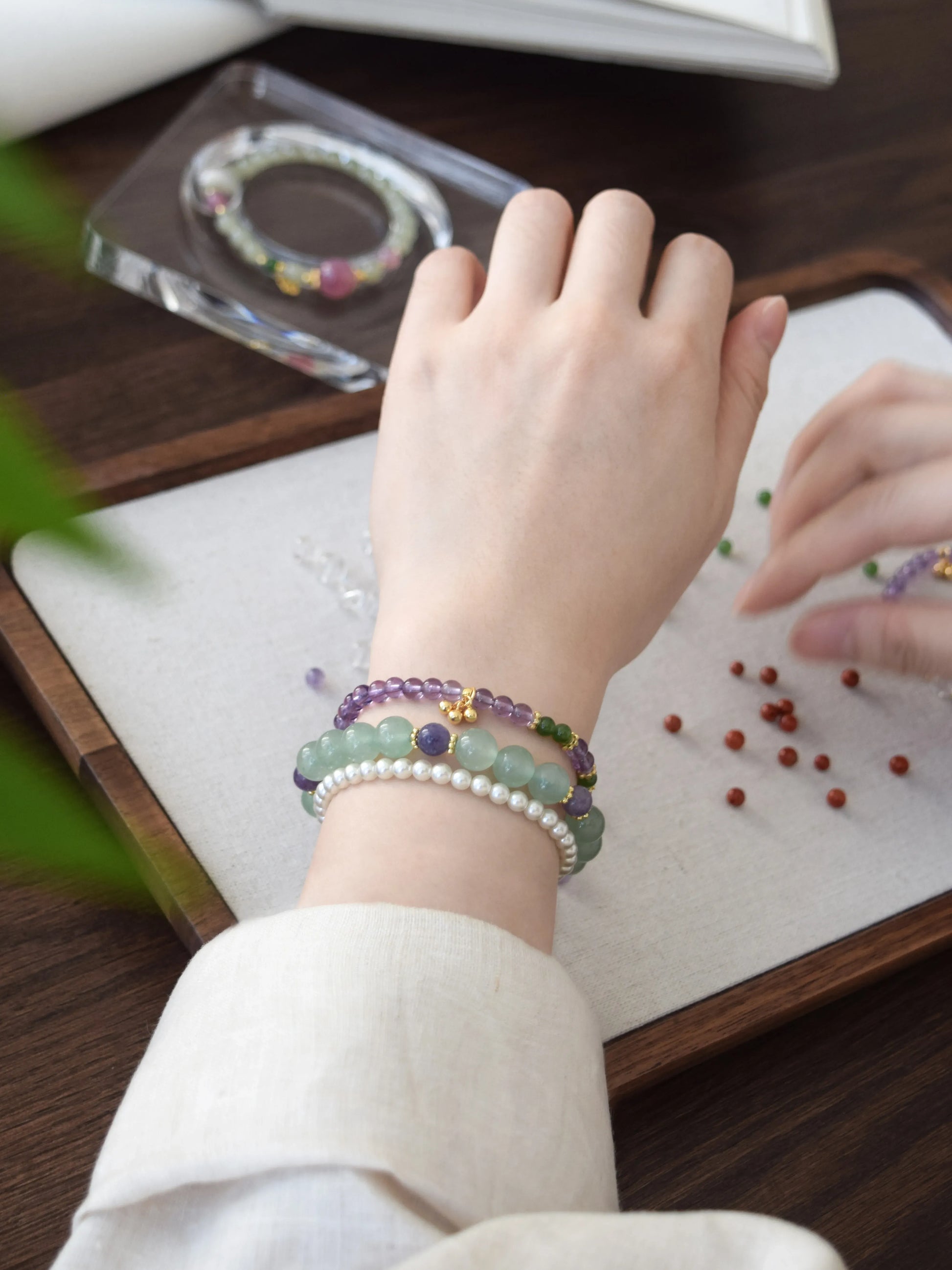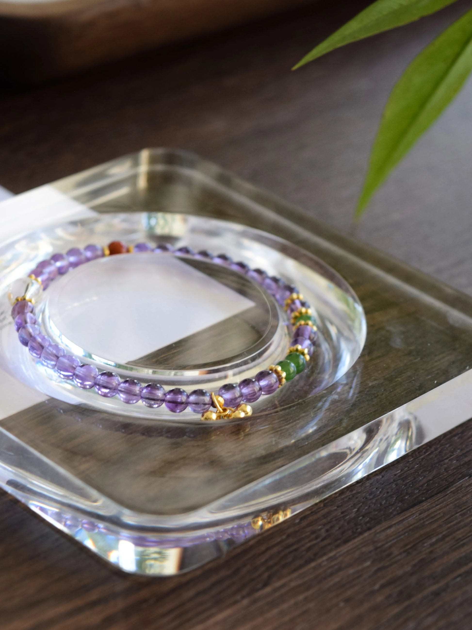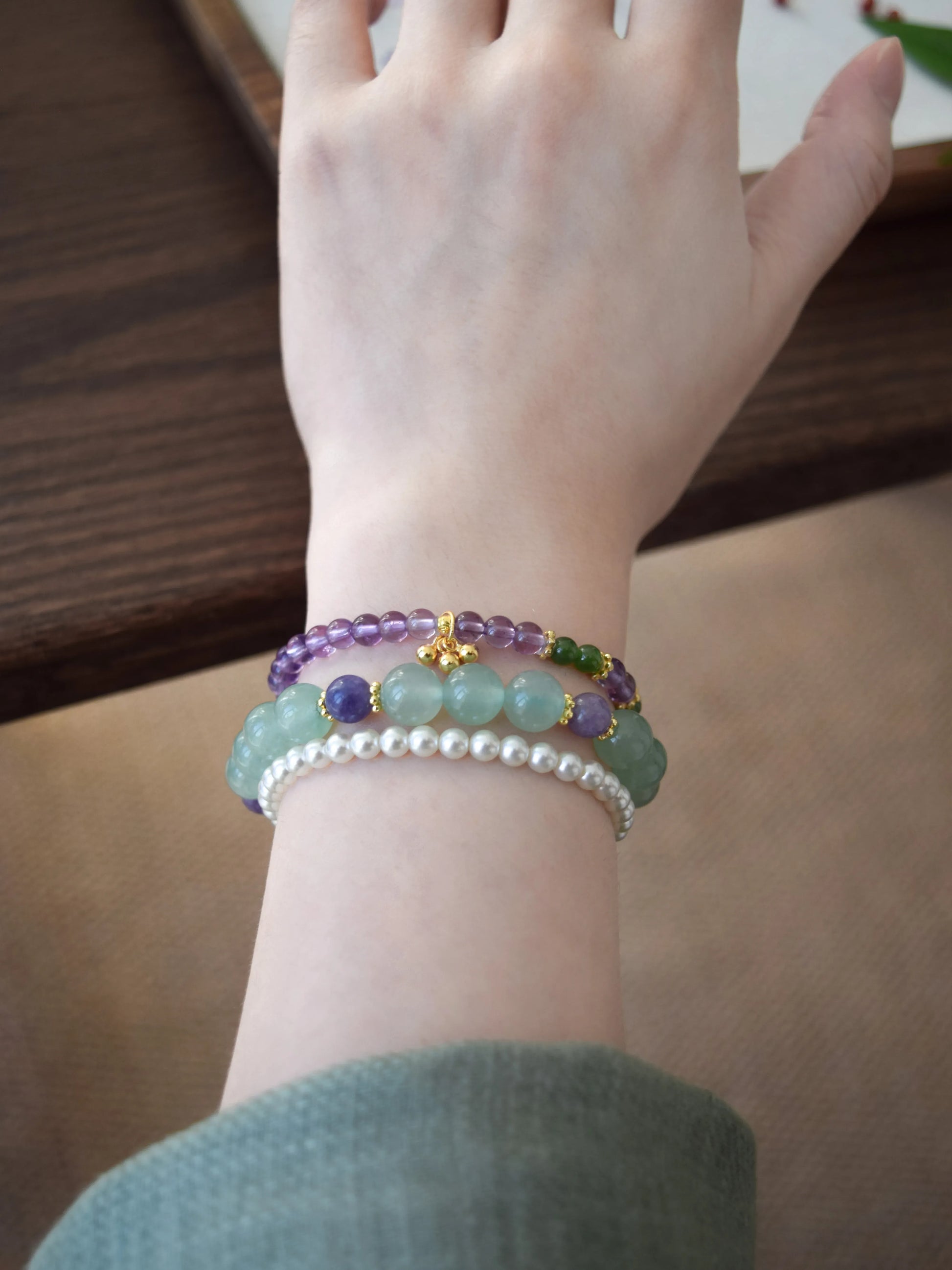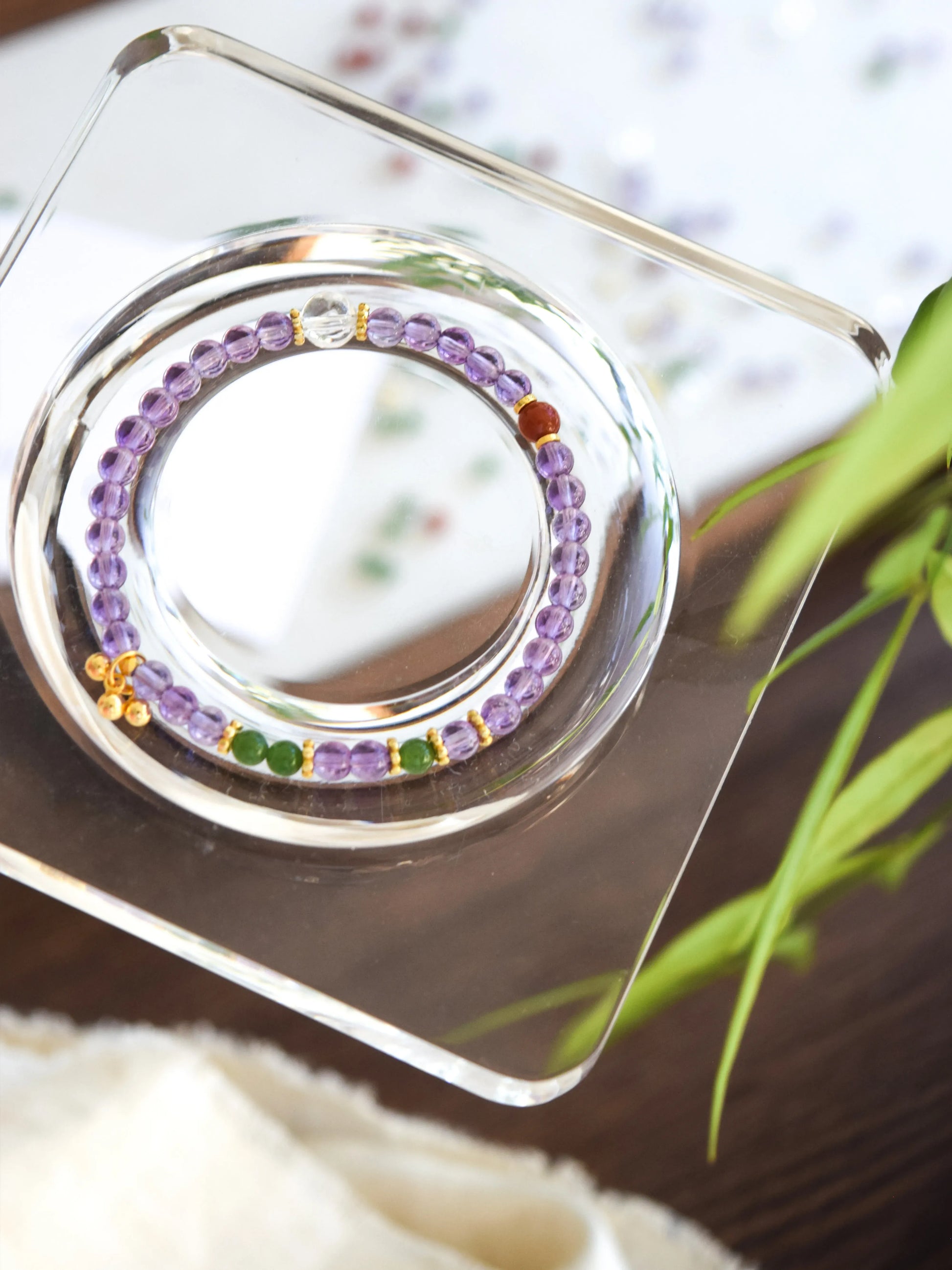 「紫棠」アメジスト×ホータン玉 クールトーン 天然石ブレスレット レディース
