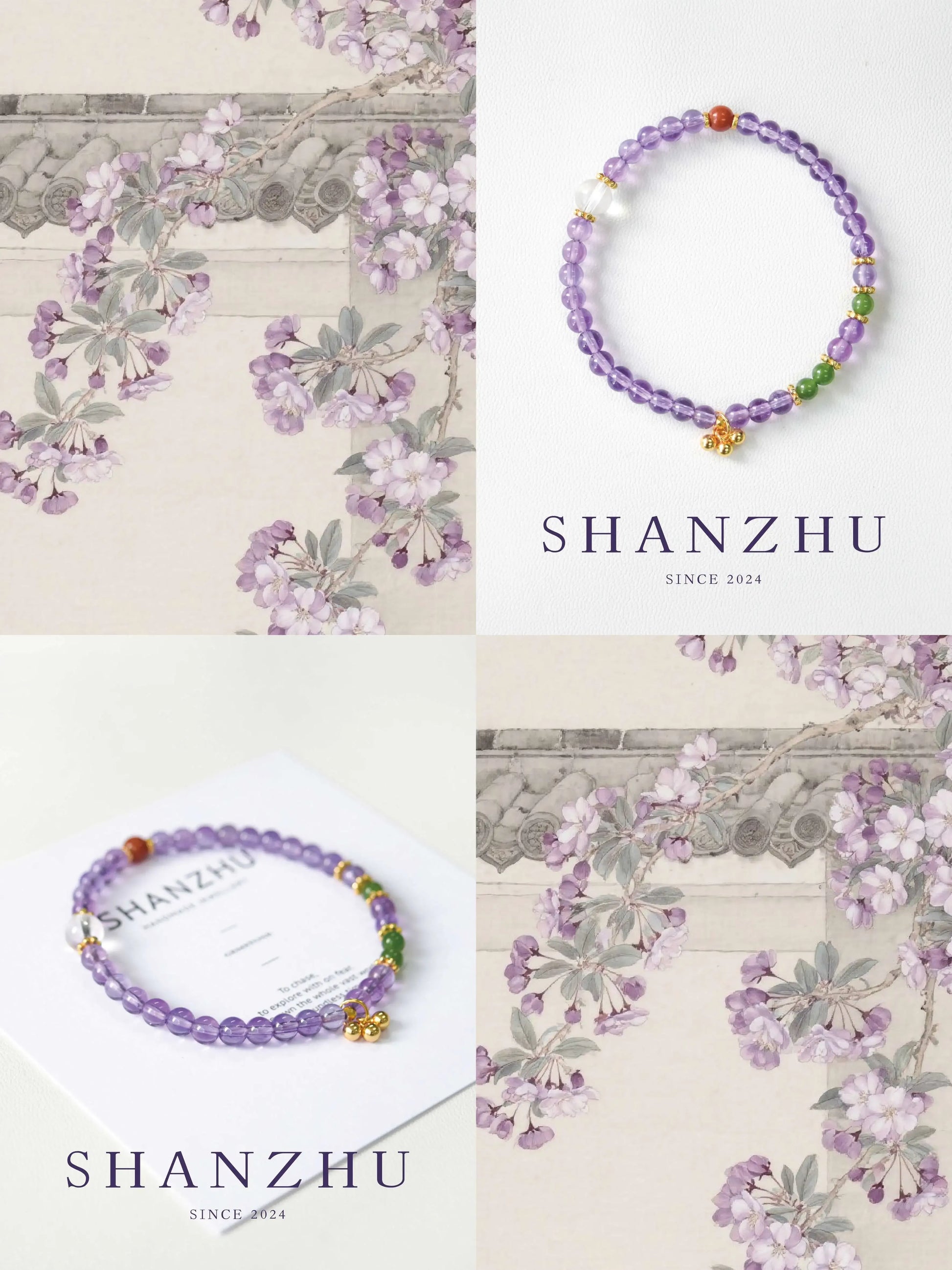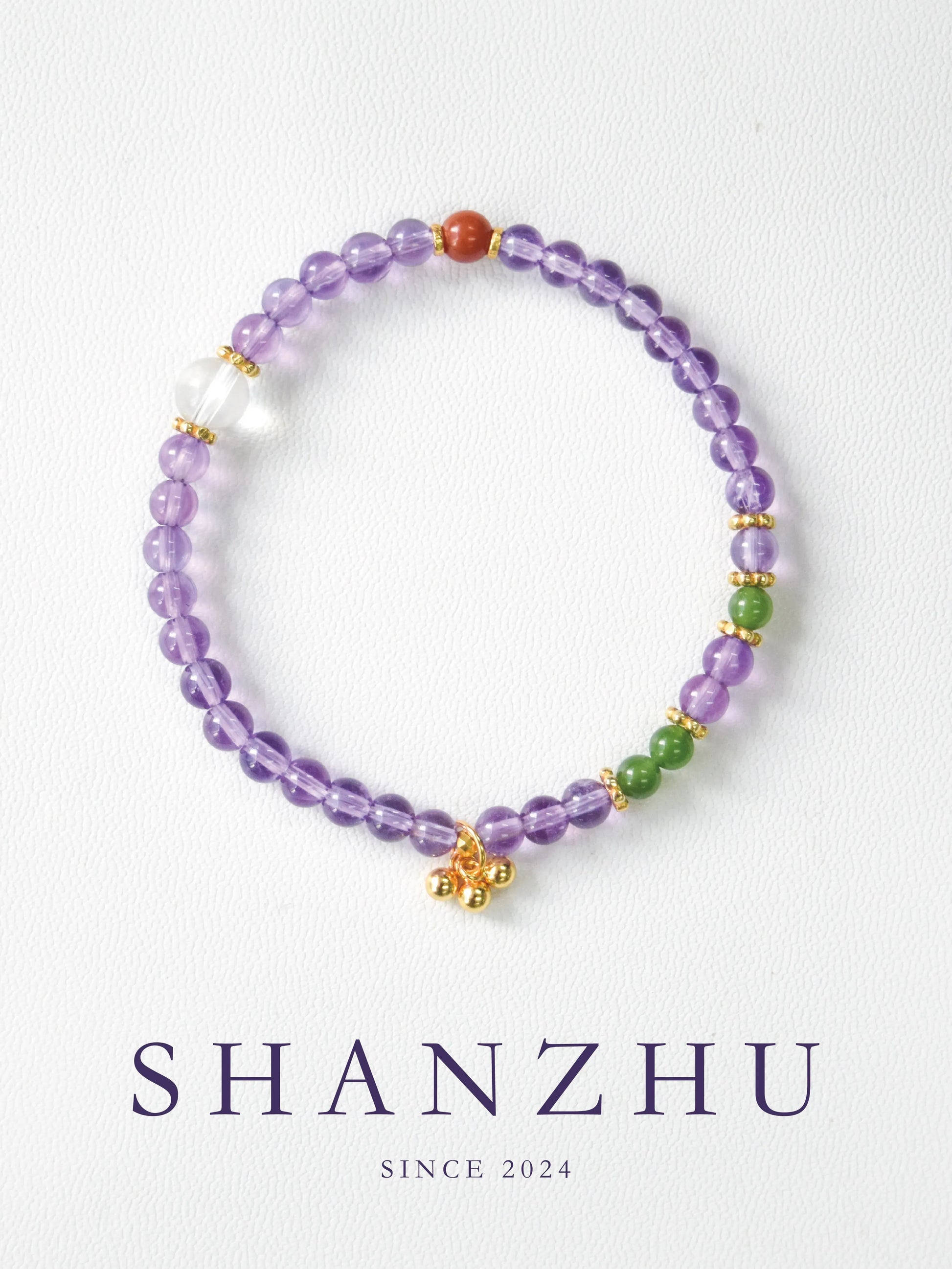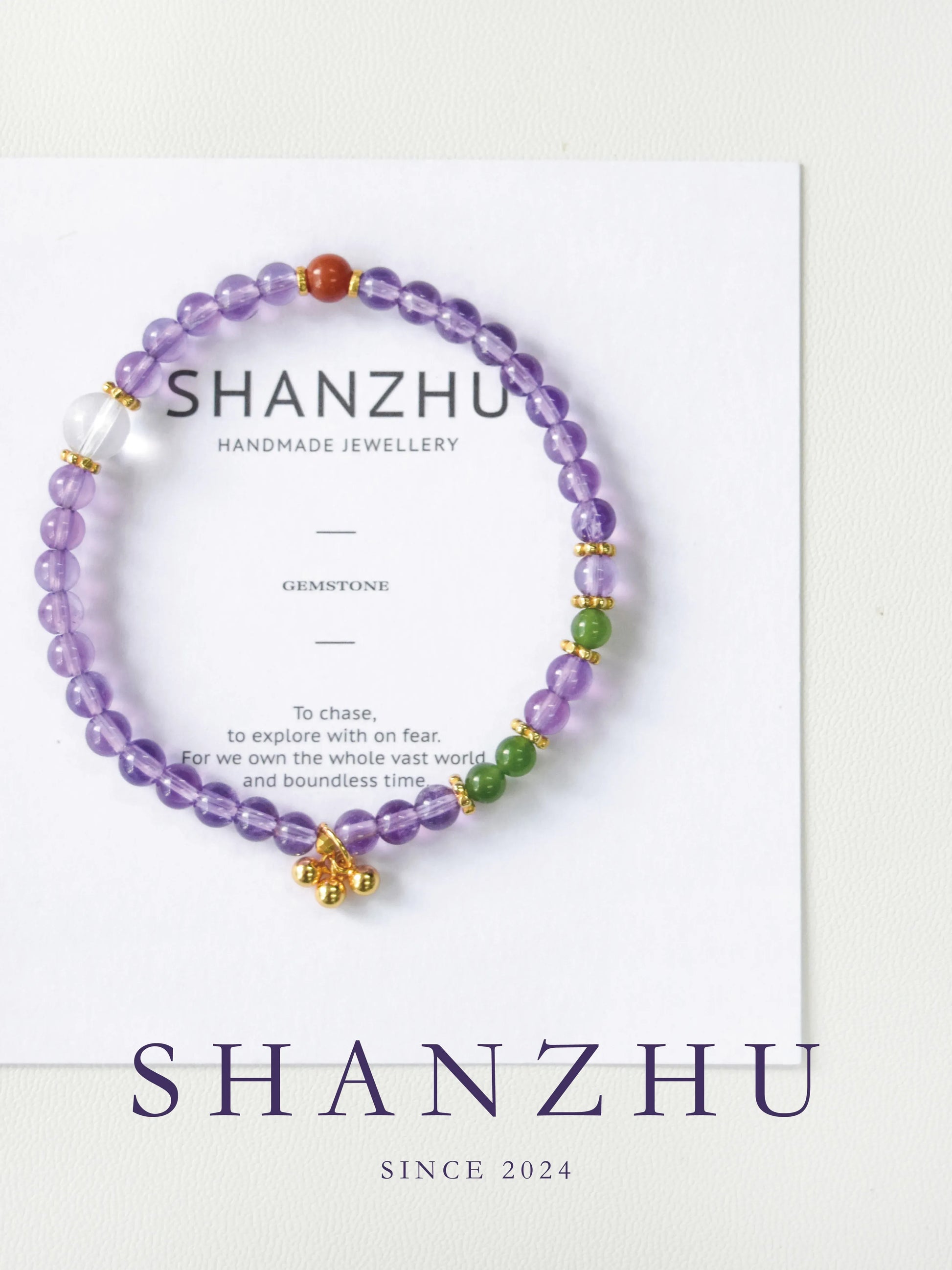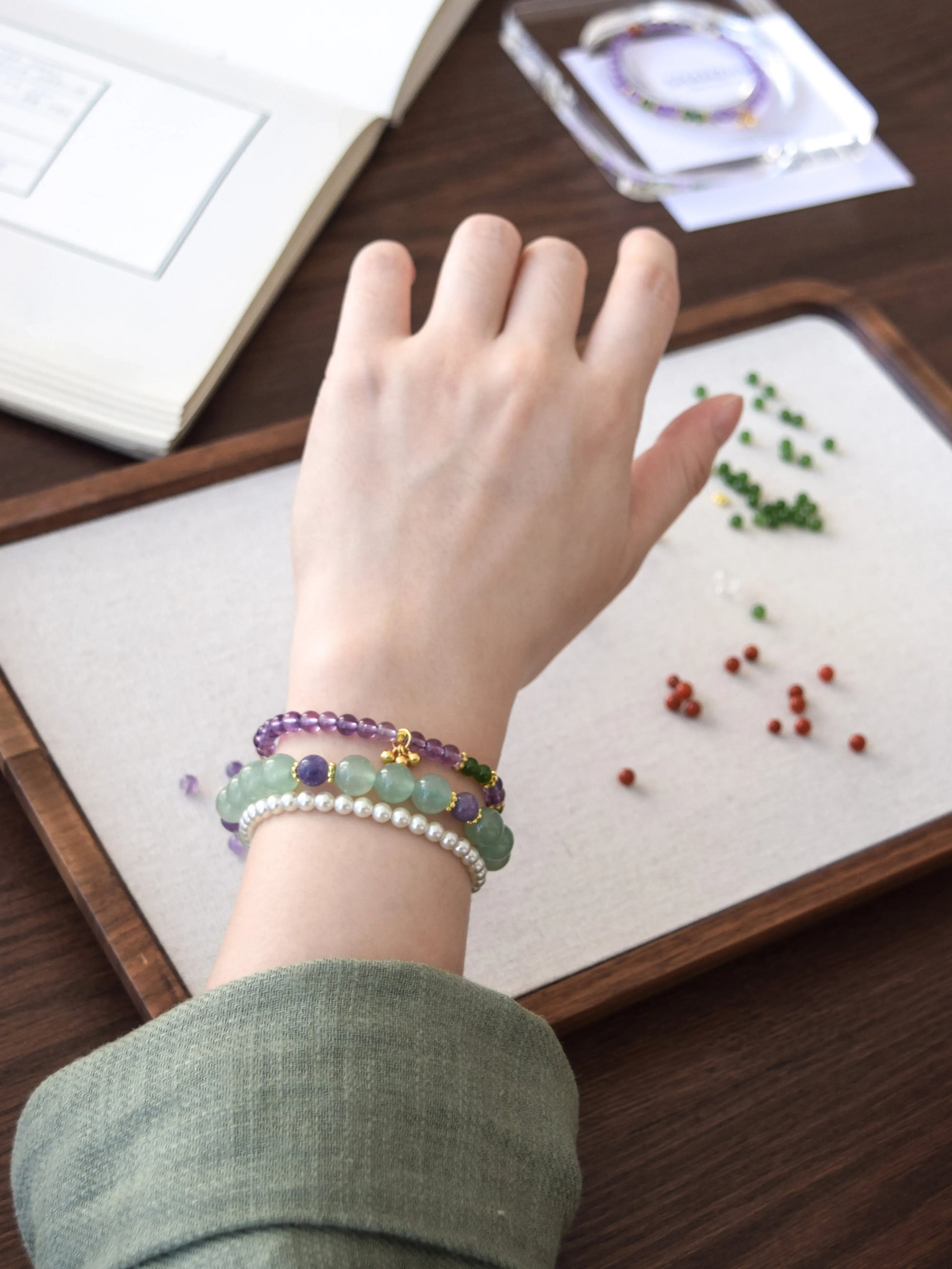 「紫棠」アメジスト×ホータン玉 クールトーン 天然石ブレスレット レディース