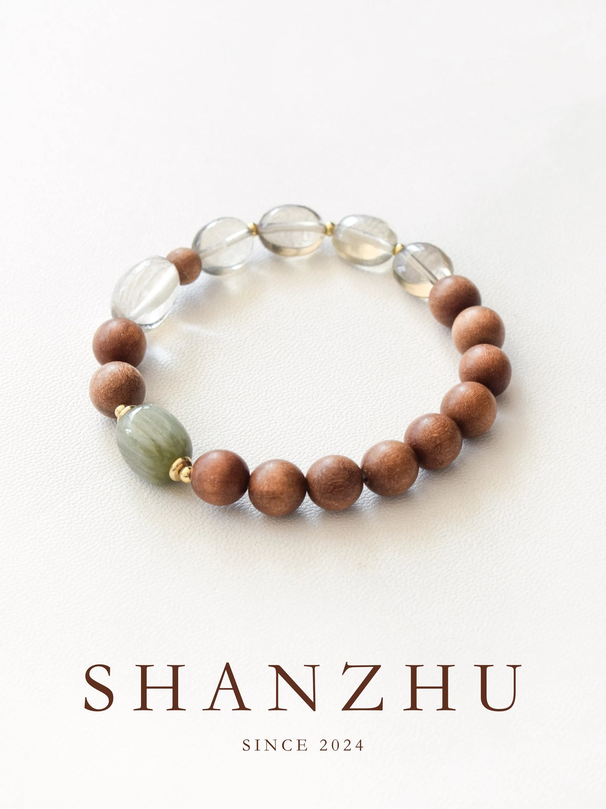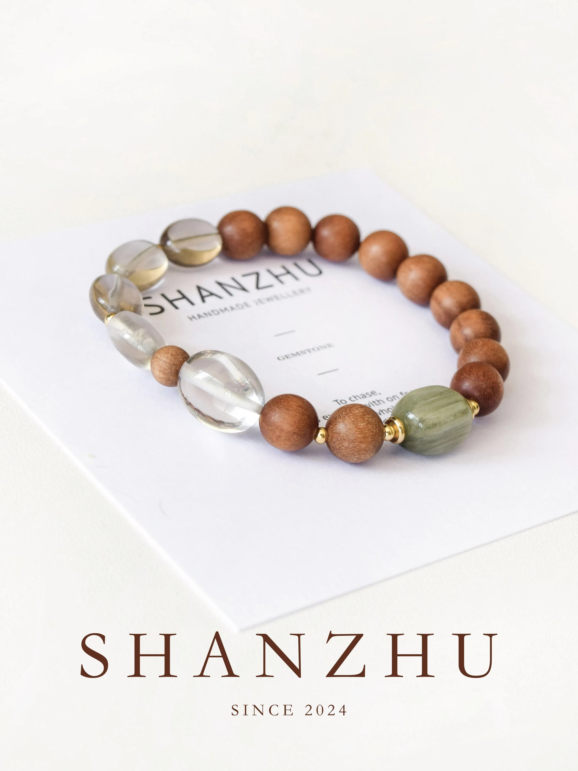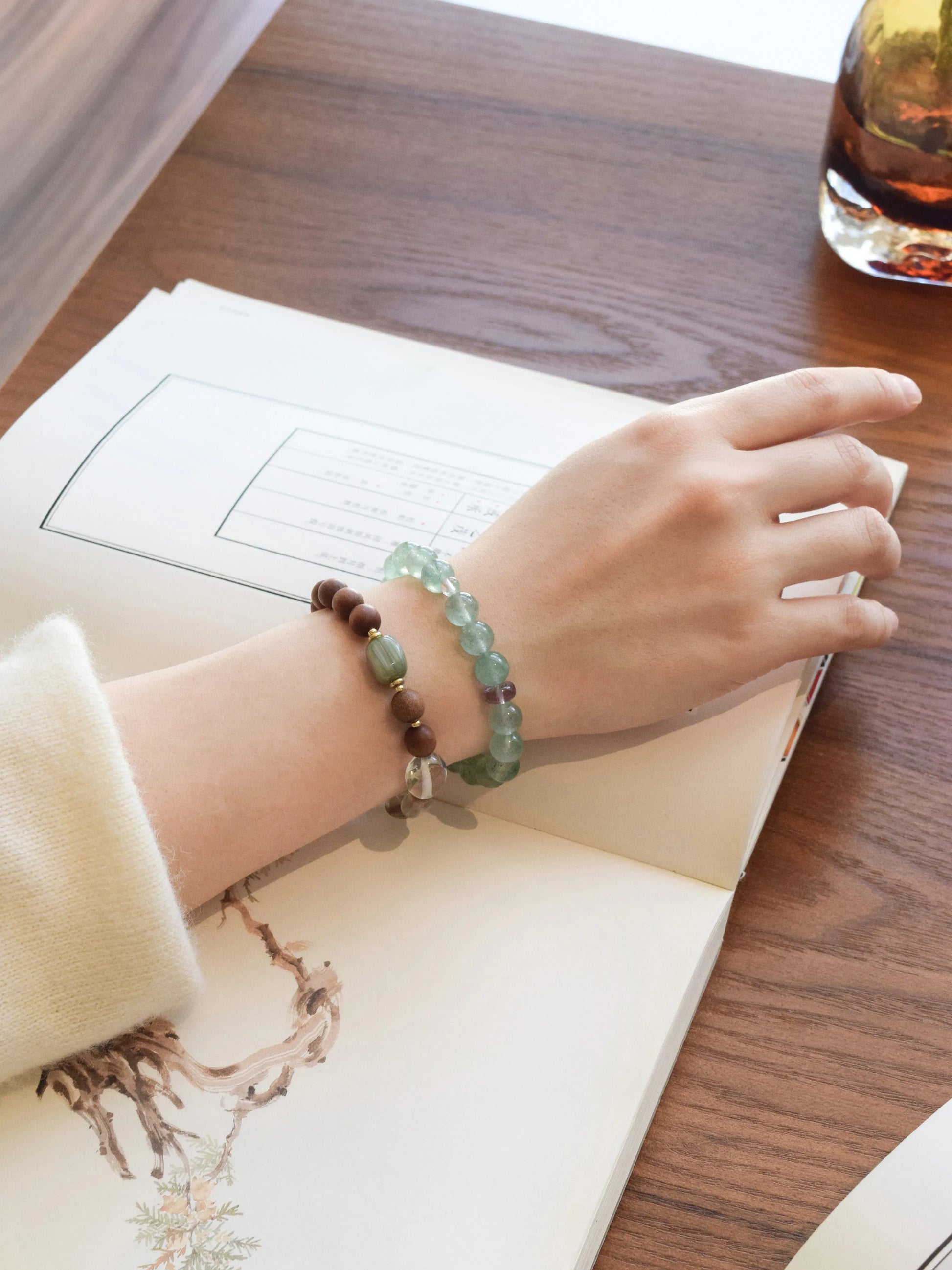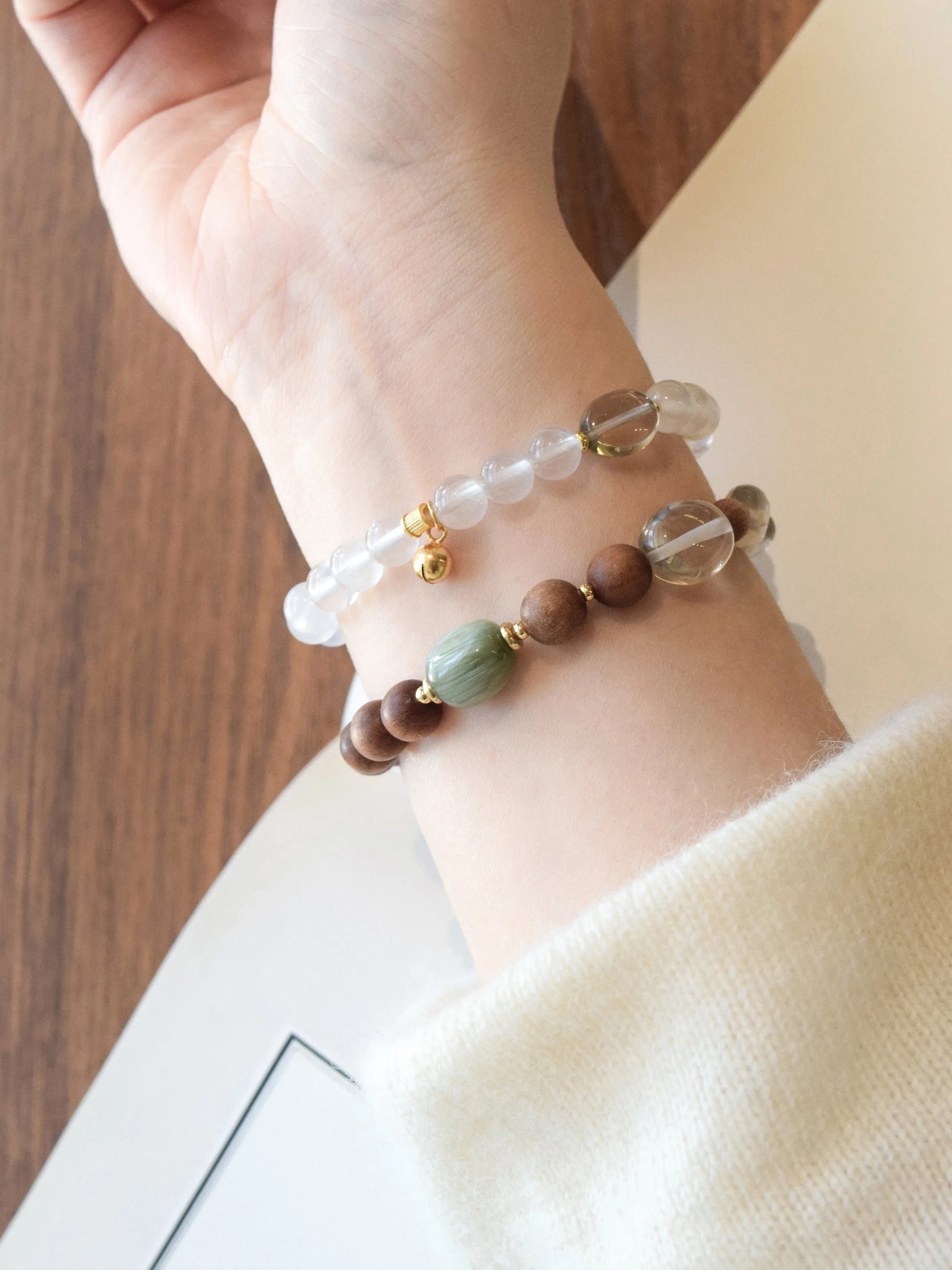 「雪松」ティークォーツ×ホーソン×グリーンラビットヘア 天然石ブレスレット