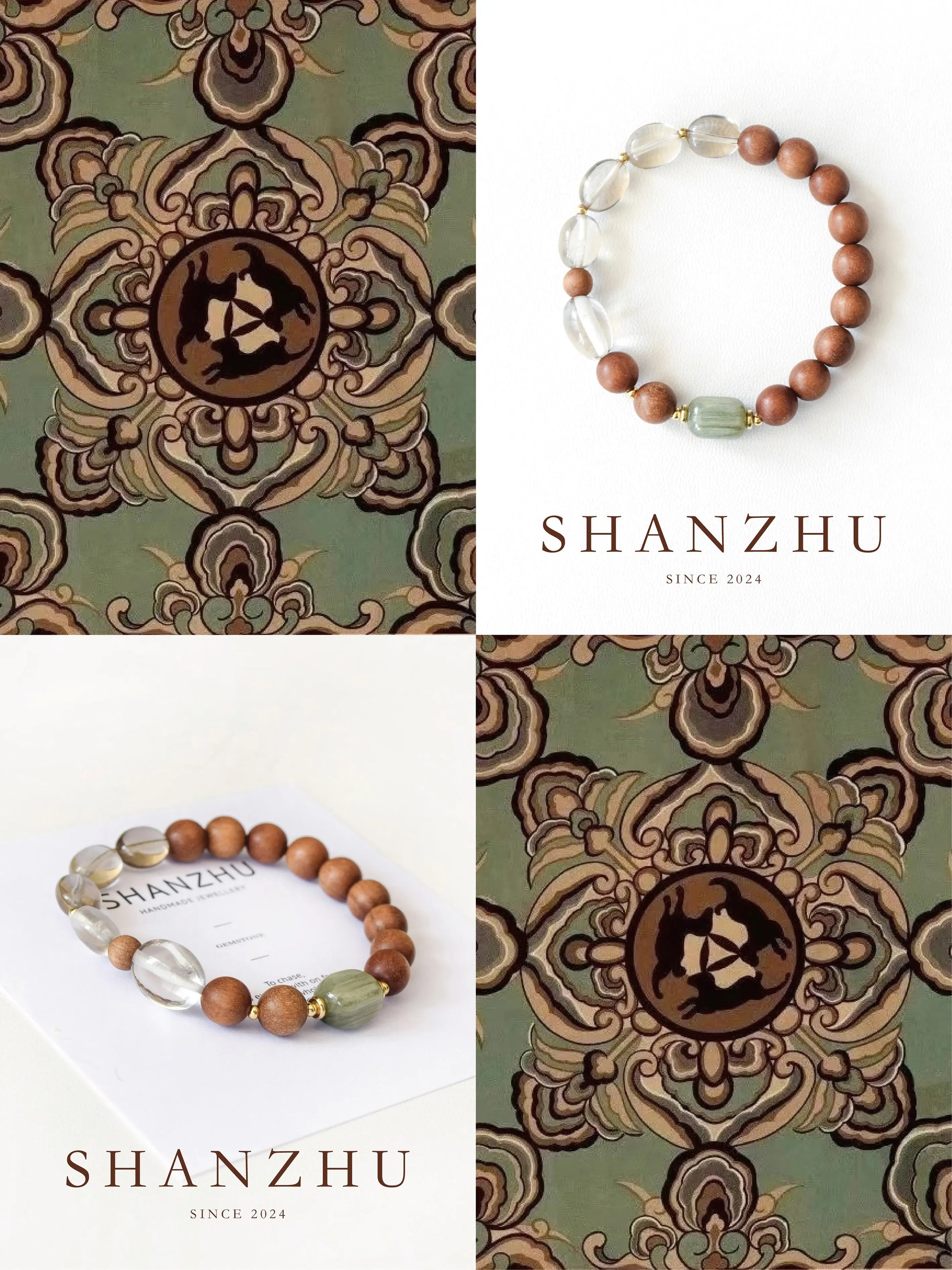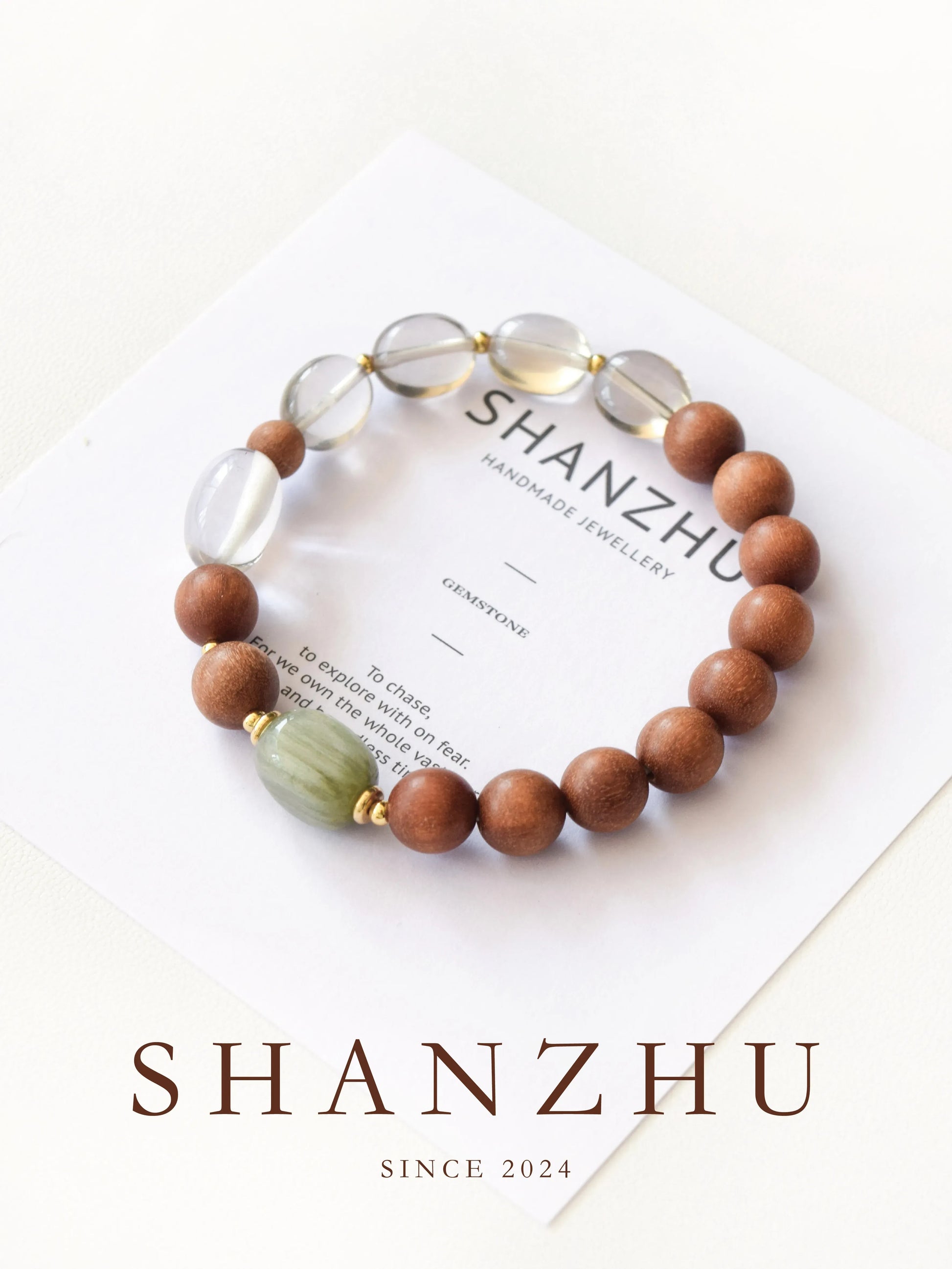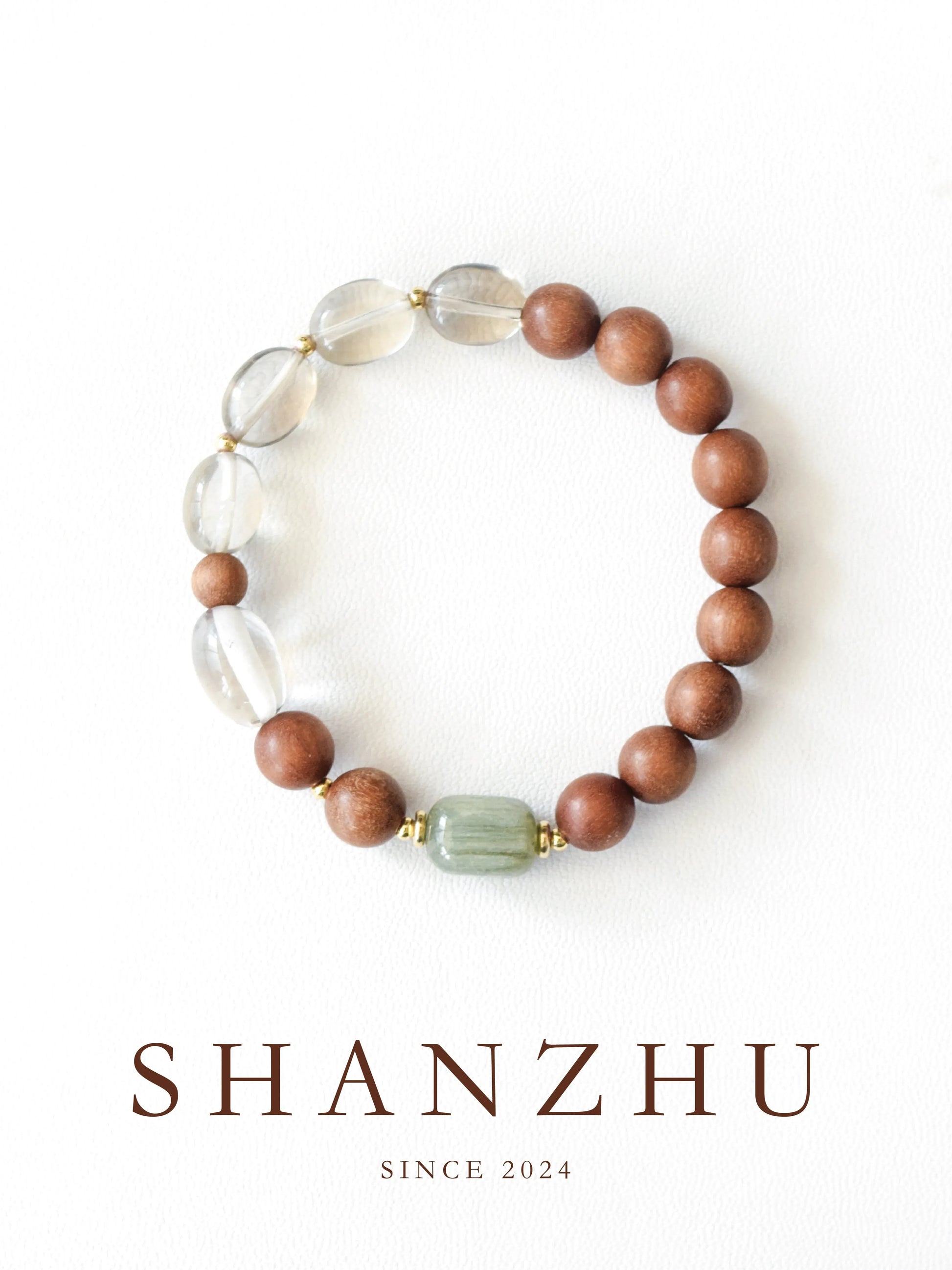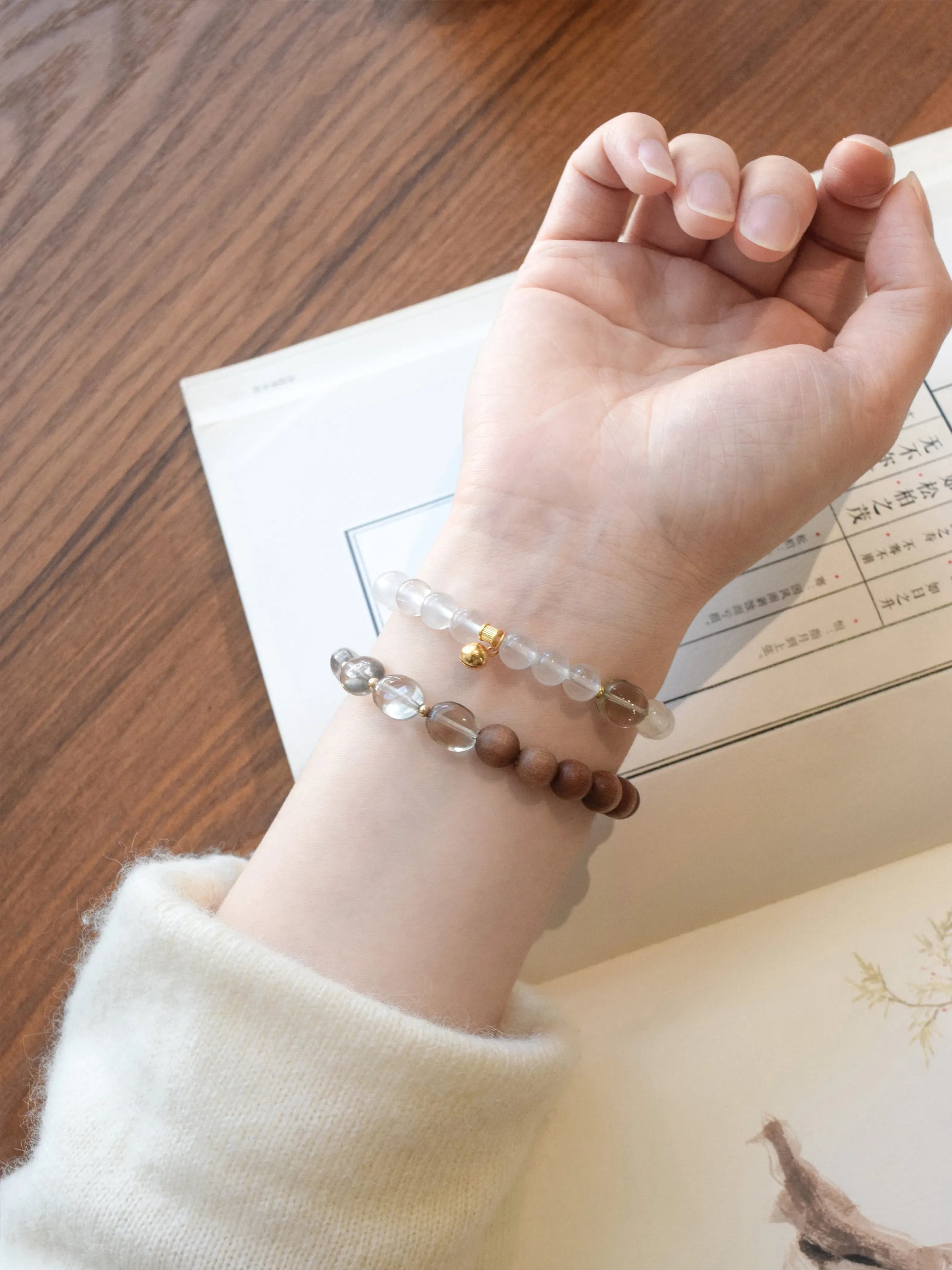 「雪松」ティークォーツ×ホーソン×グリーンラビットヘア 天然石ブレスレット