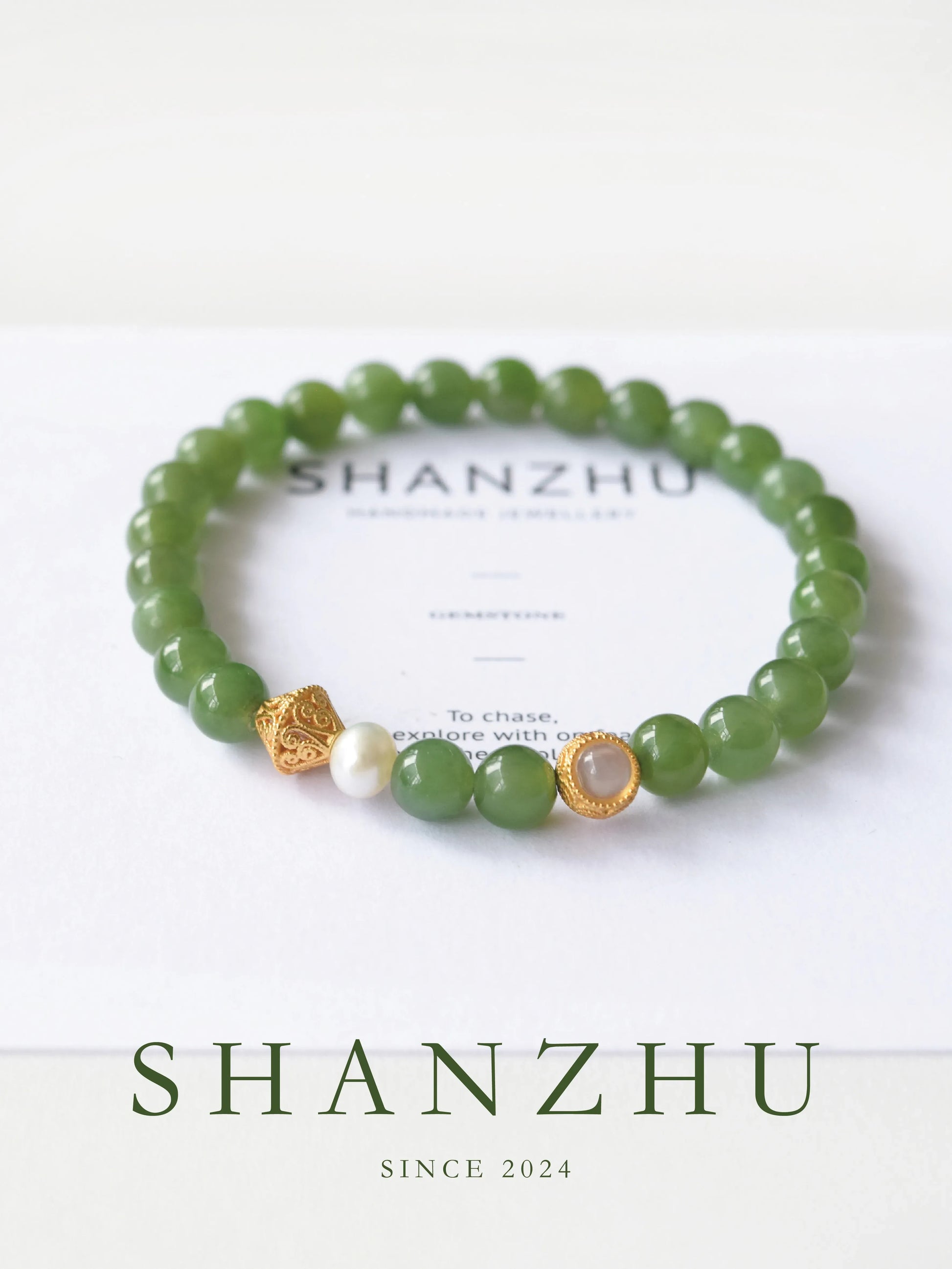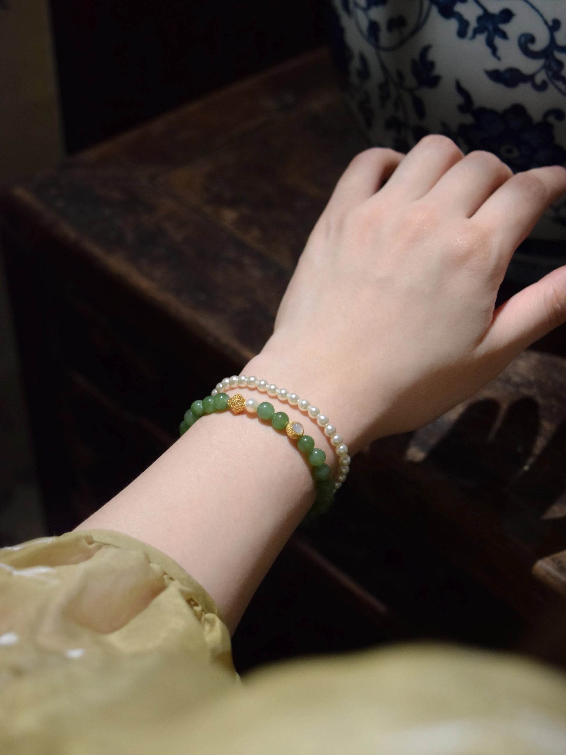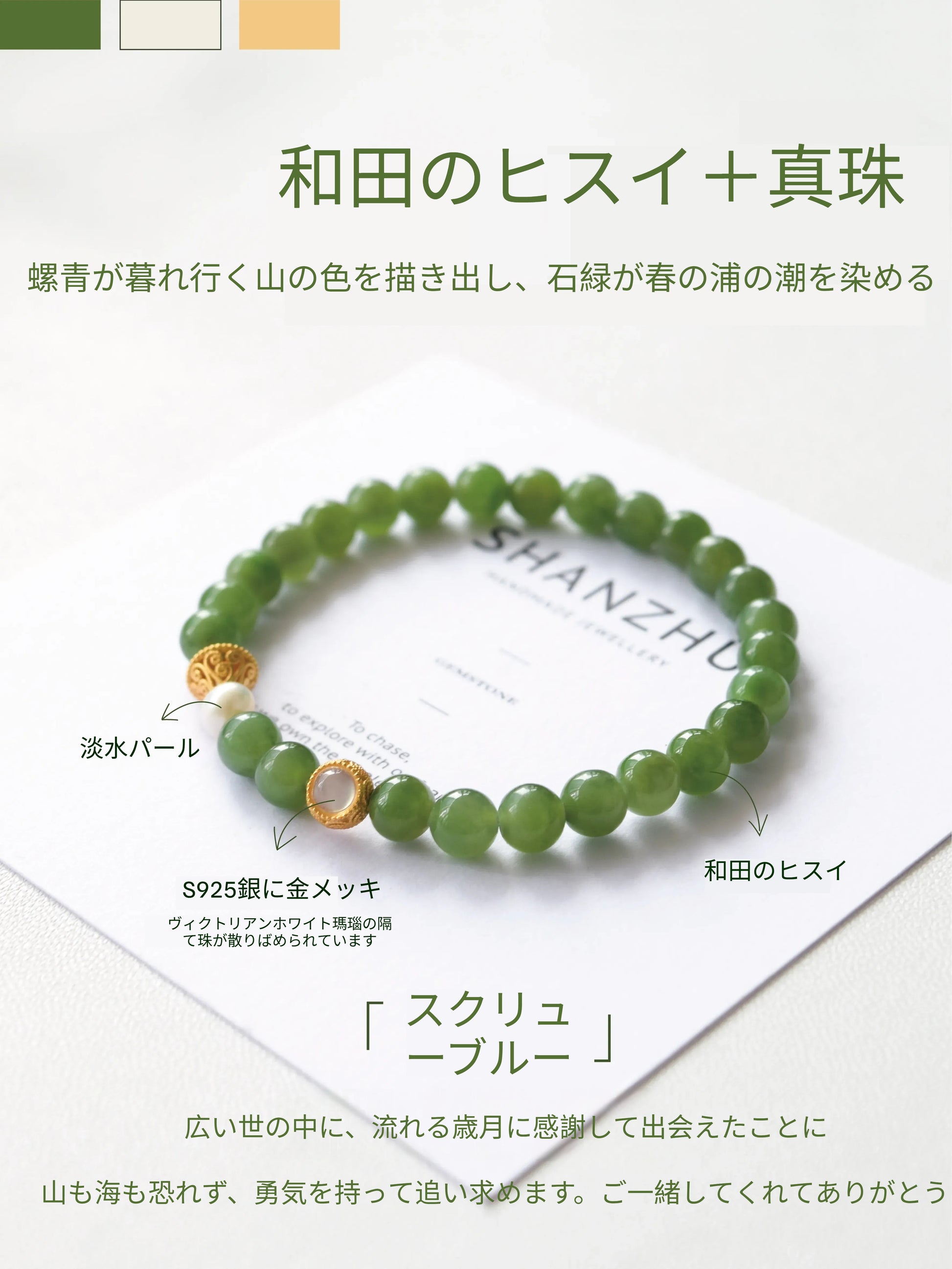 「螺青」ホータン玉 碧玉 明肌系 天然石ブレスレット レディース