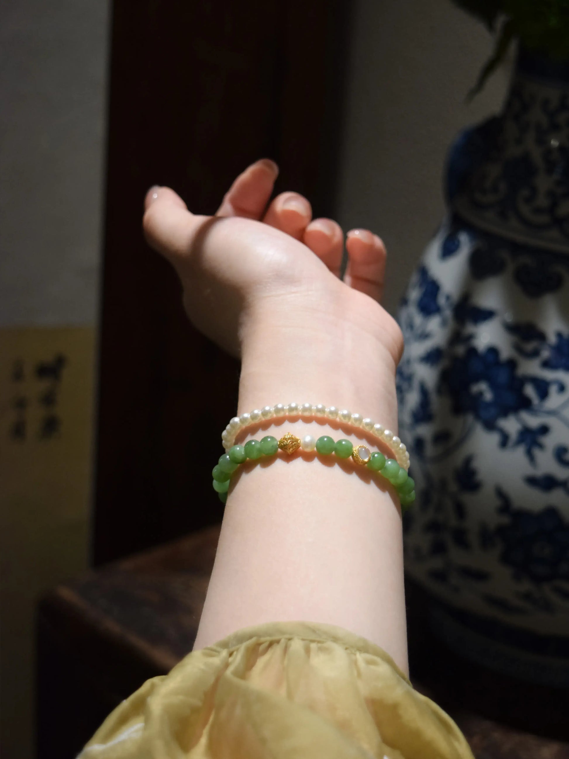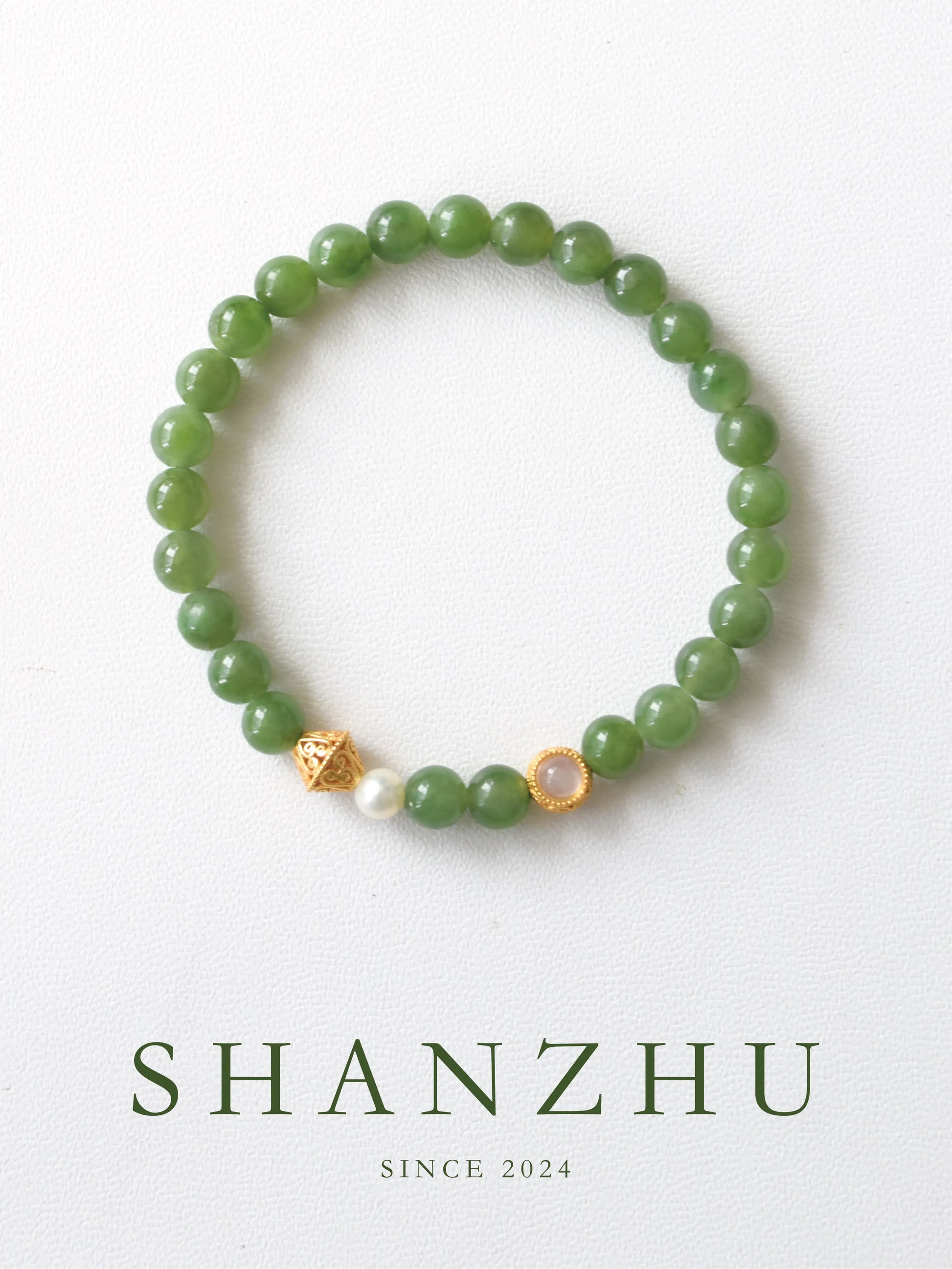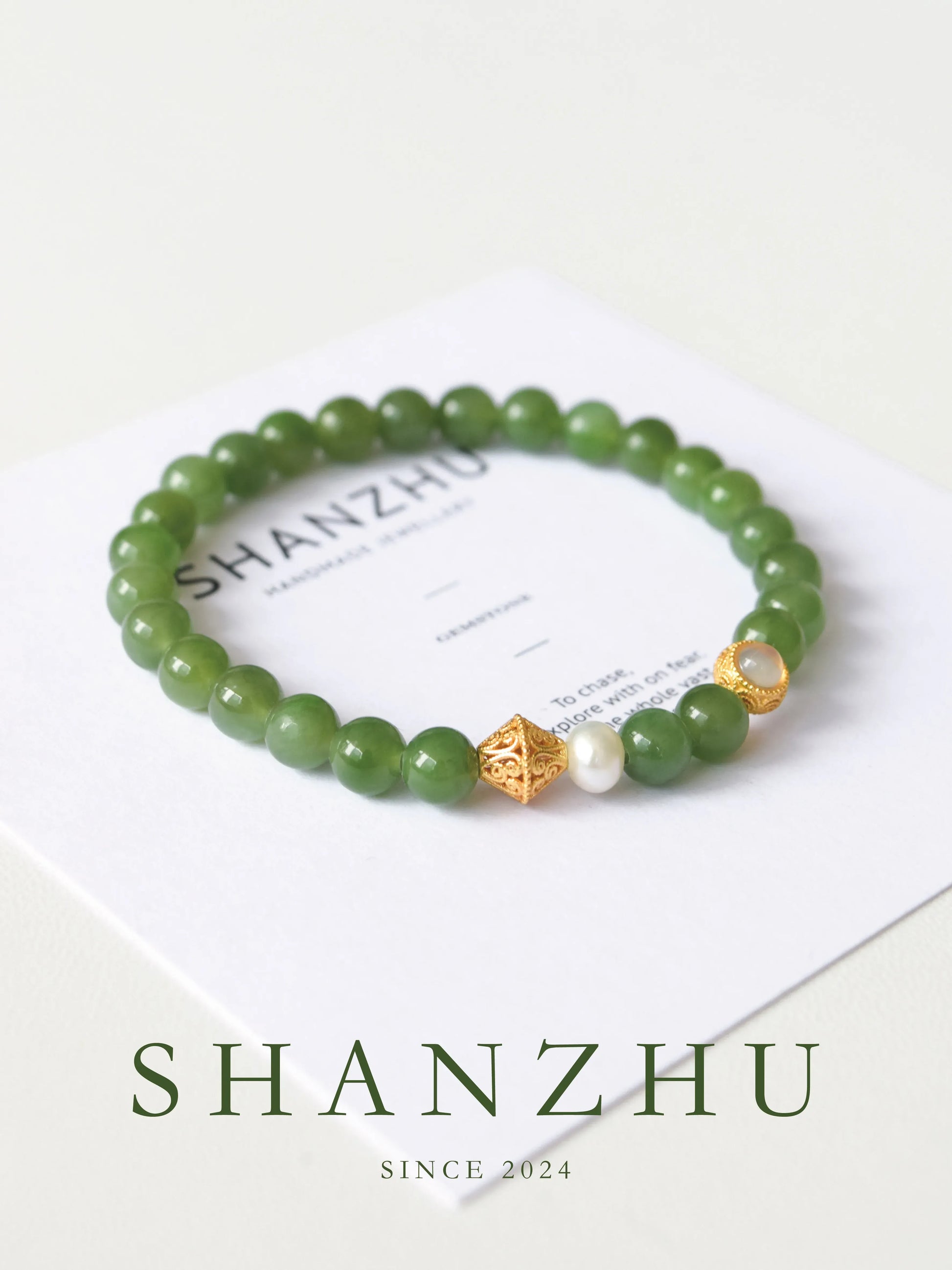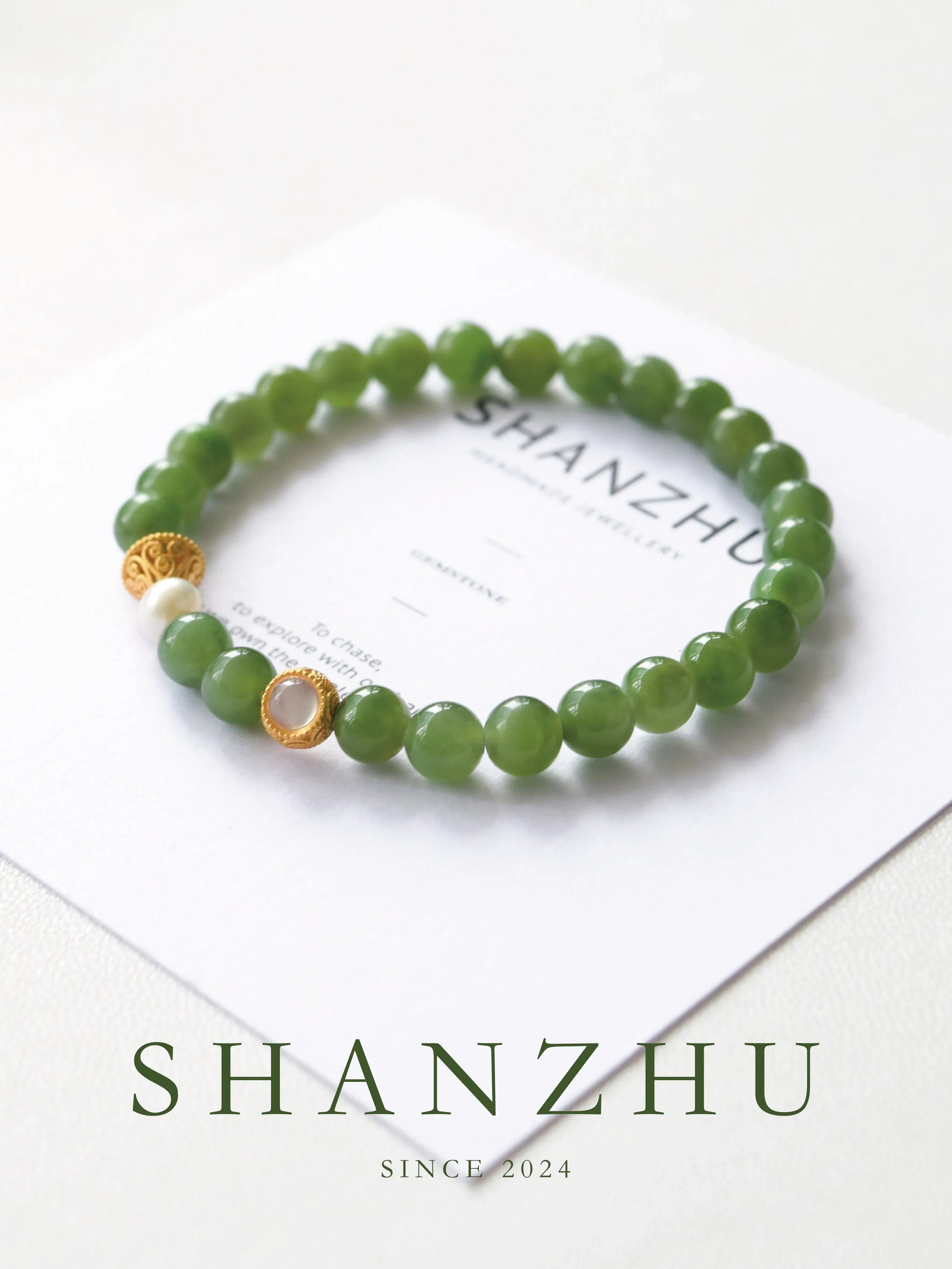 「螺青」ホータン玉 碧玉 明肌系 天然石ブレスレット レディース