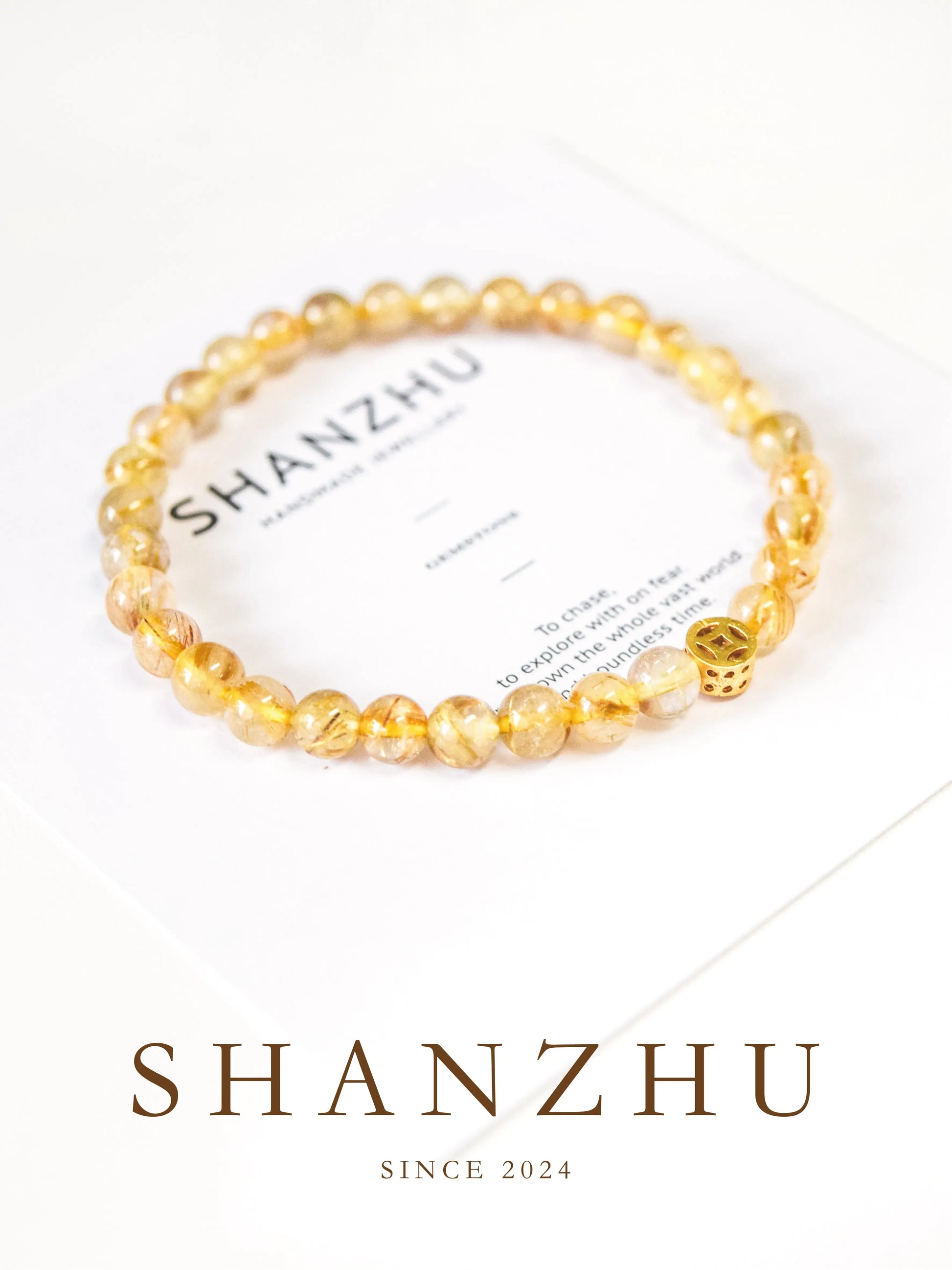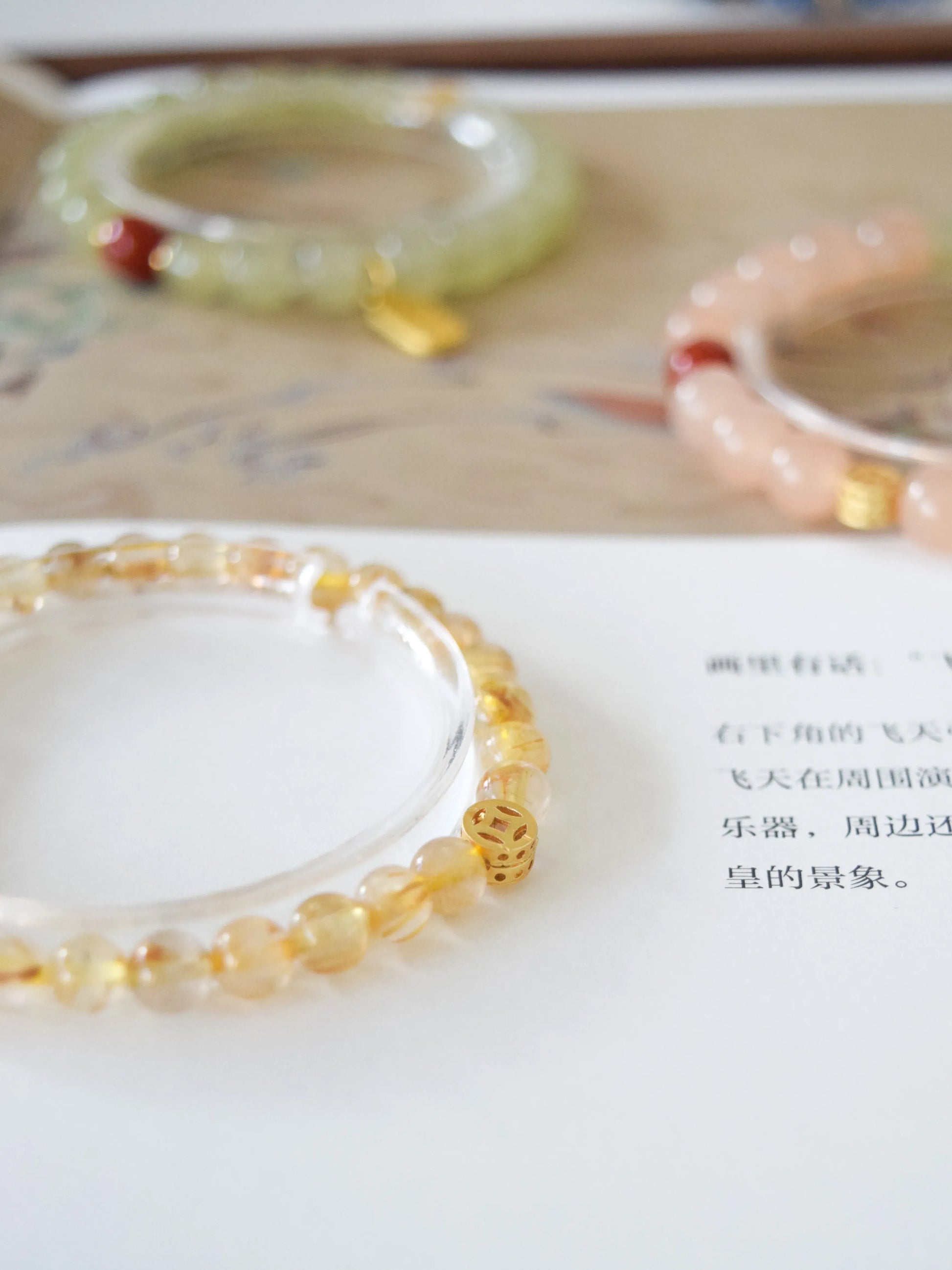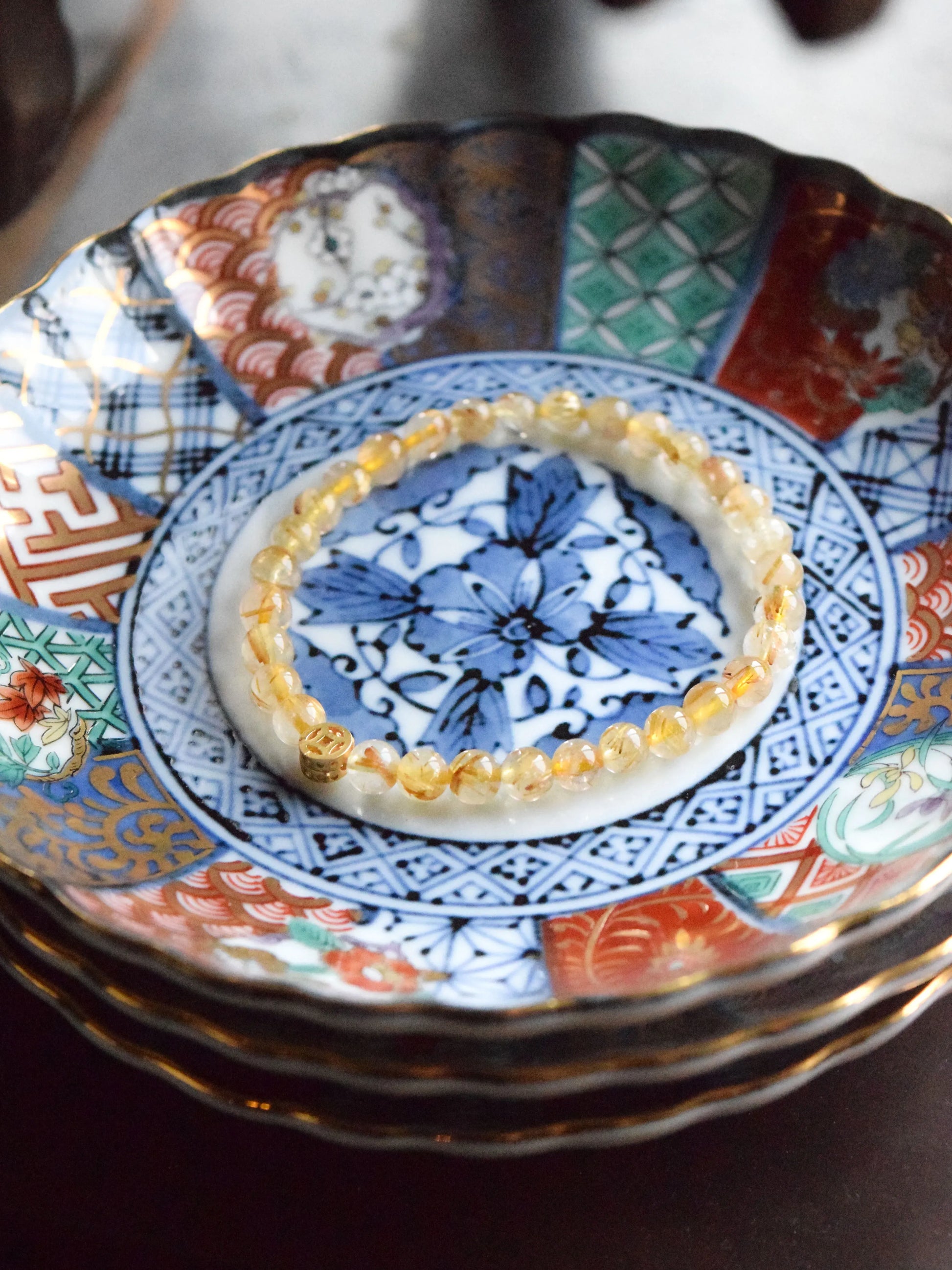 「鎏金」ゴールデンルチルクォーツ 文玩調 ギフトブレスレット 高級感あり