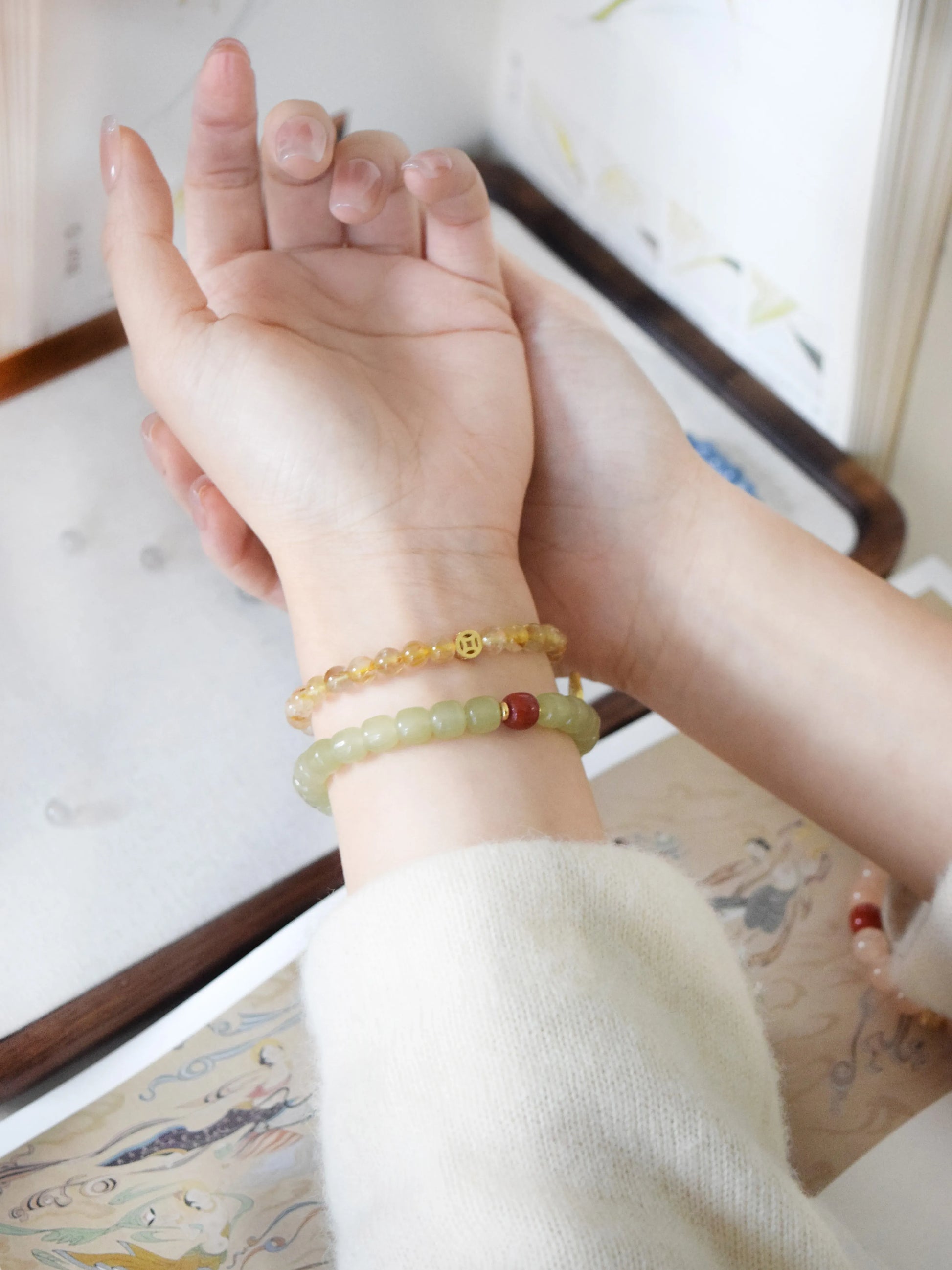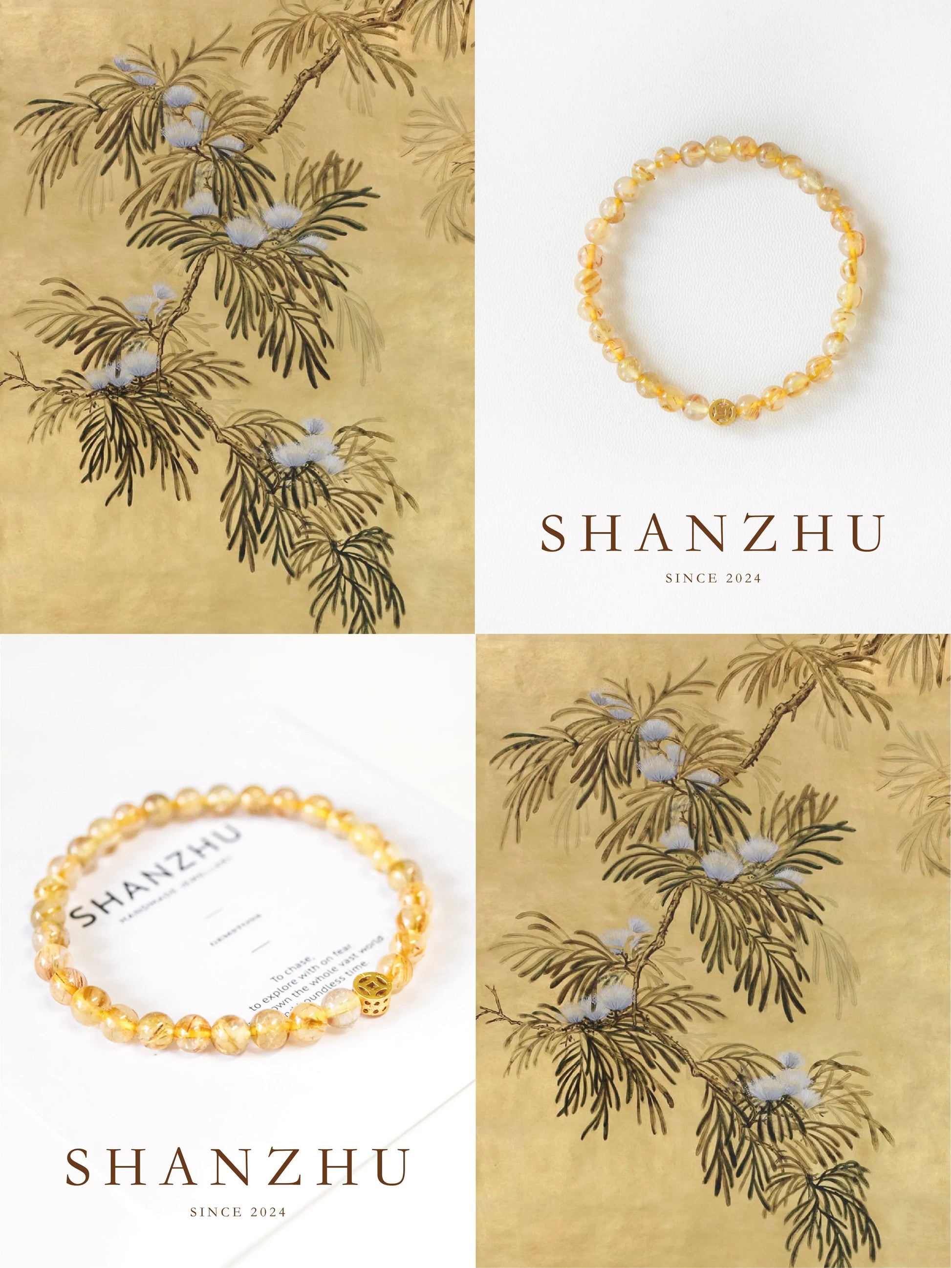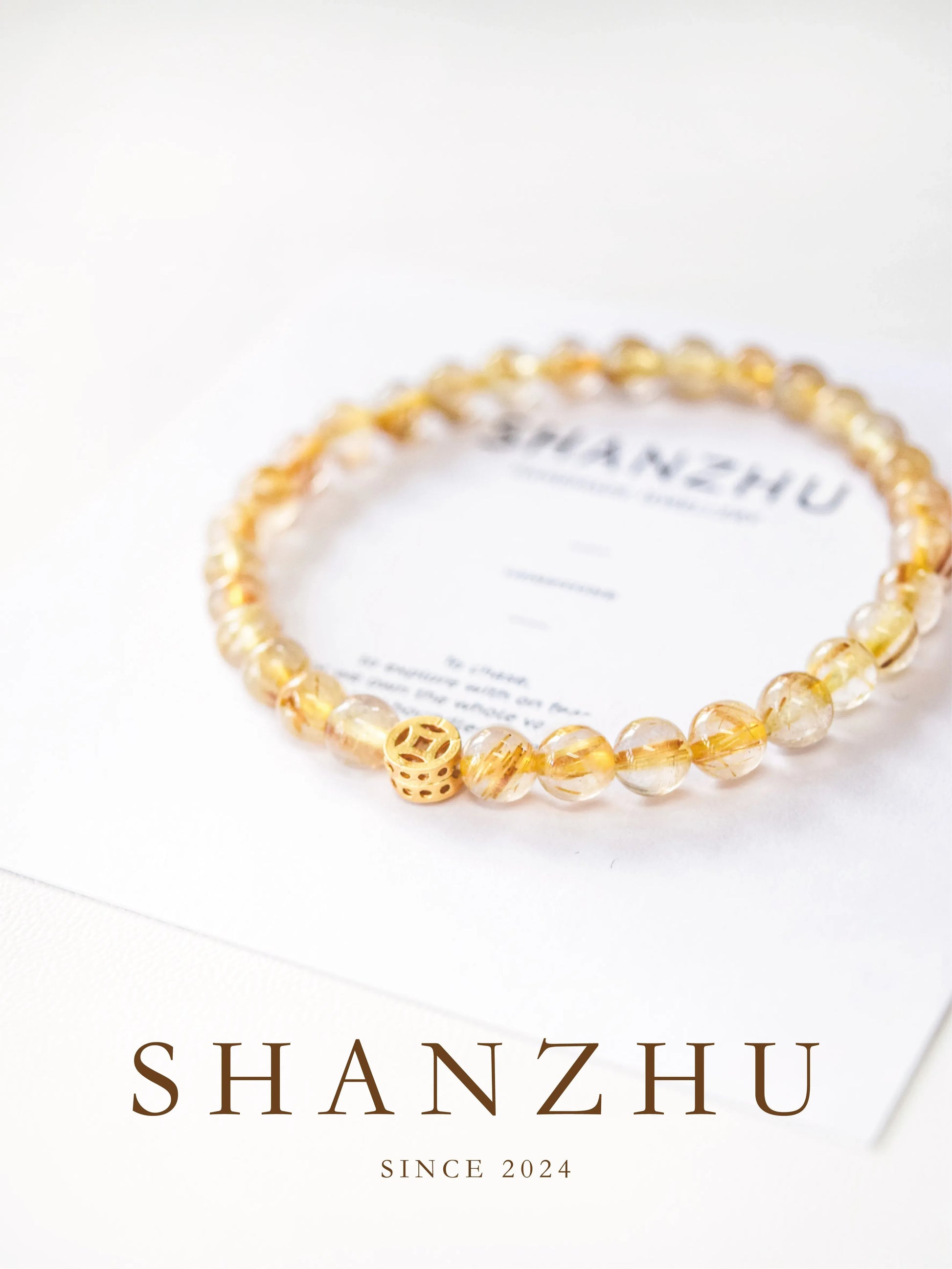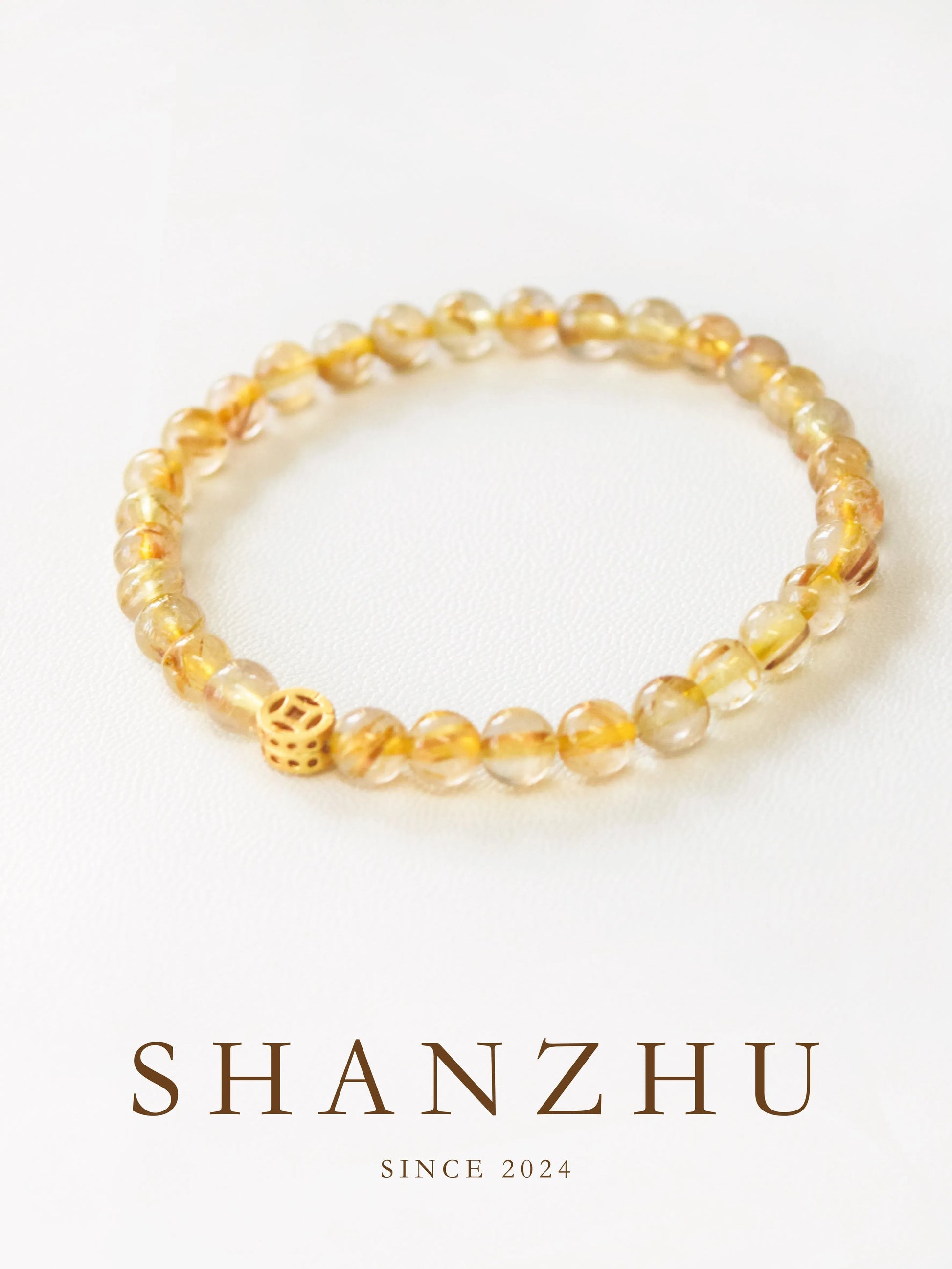 「鎏金」ゴールデンルチルクォーツ 文玩調 ギフトブレスレット 高級感あり