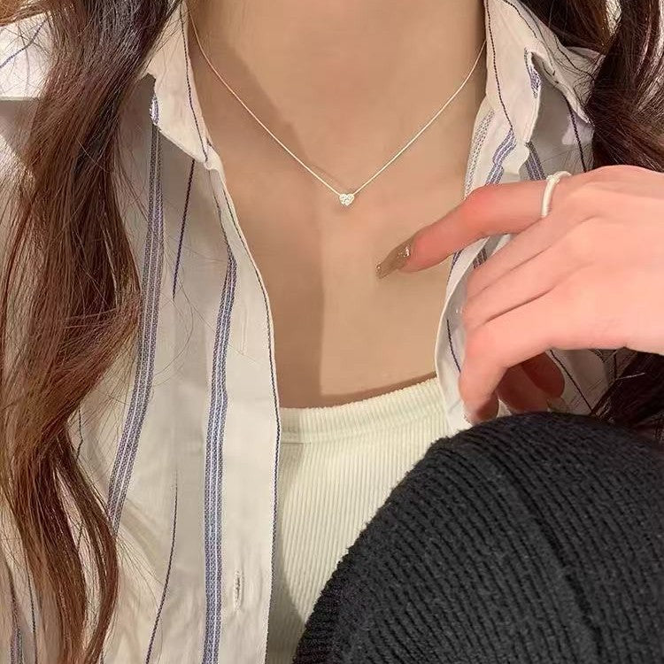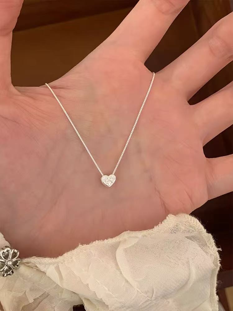 925シルバーメッキミニズirconiaハートネックレス女性シンプルスタイルコレクション