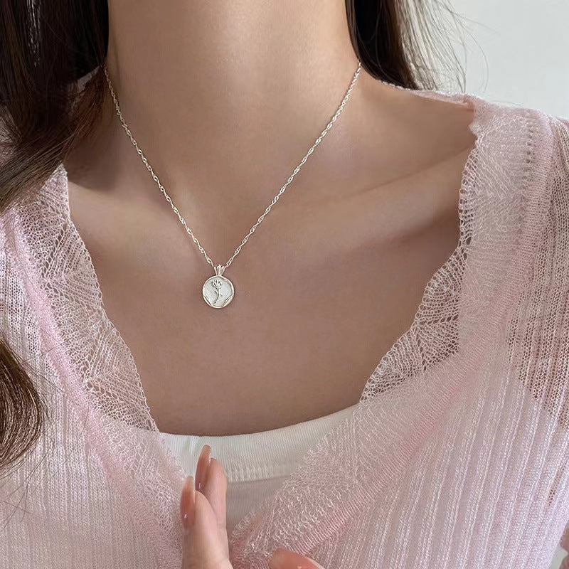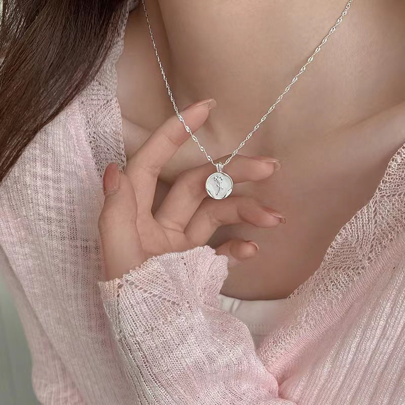925純銀チューリップネックレスオリジナル高級感ショールディングネックレス女性轻奢